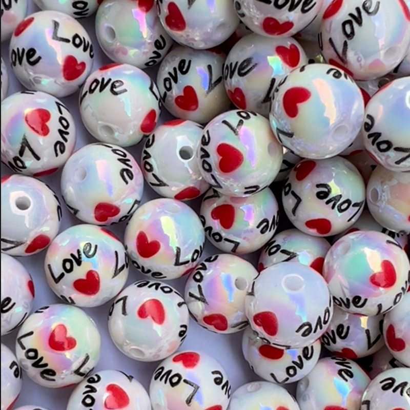 亚克力LOVE爱心圆珠情人节印花镀彩 DIY手工串珠笔手机链饰品配件