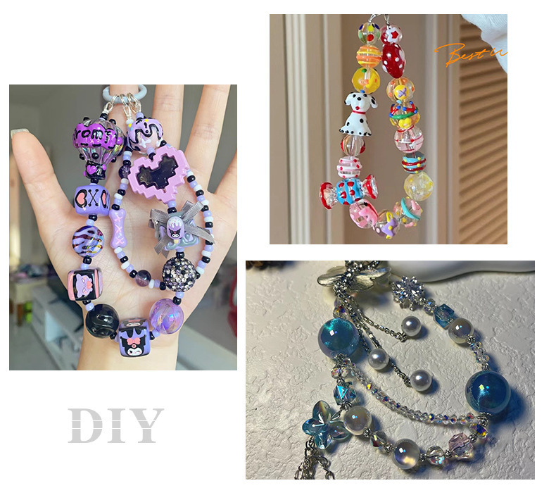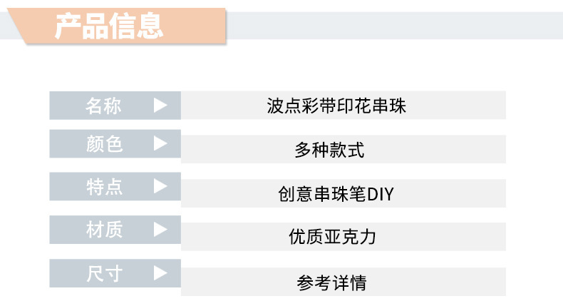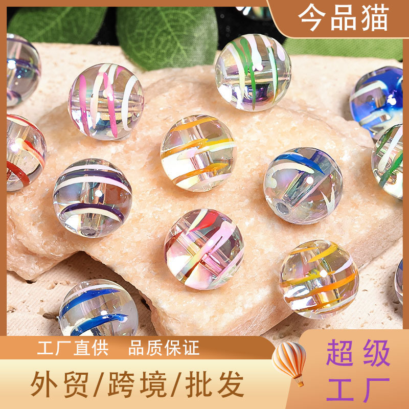 新款节日派对彩带印花圆珠彩色波点串珠diy手机链串珠笔饰品配件