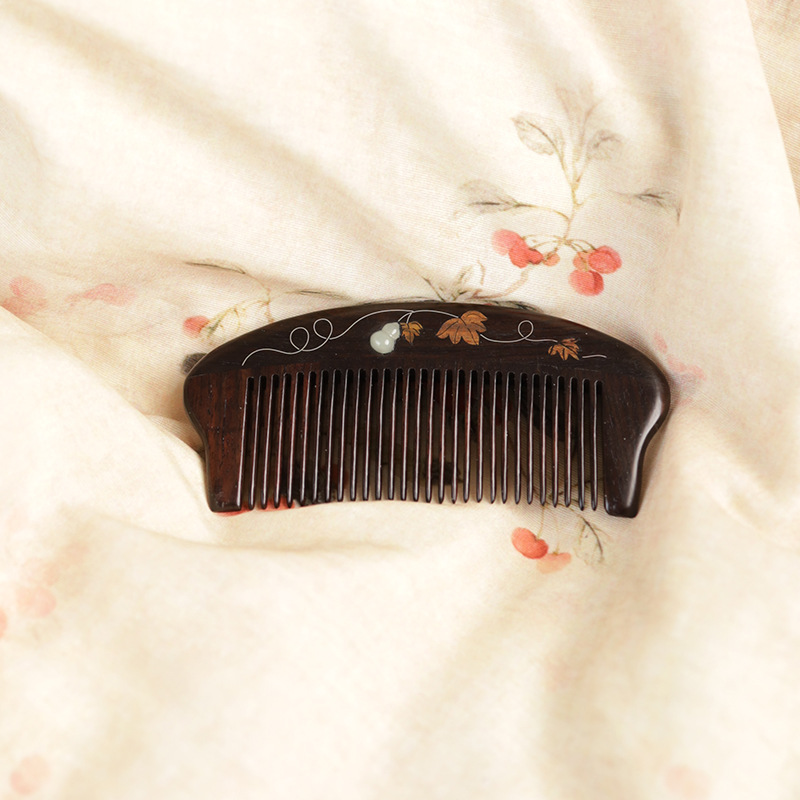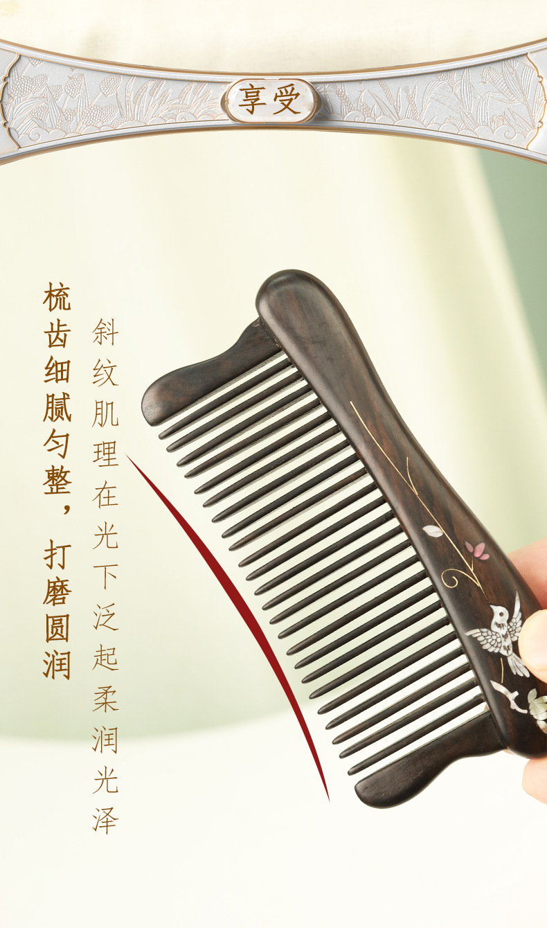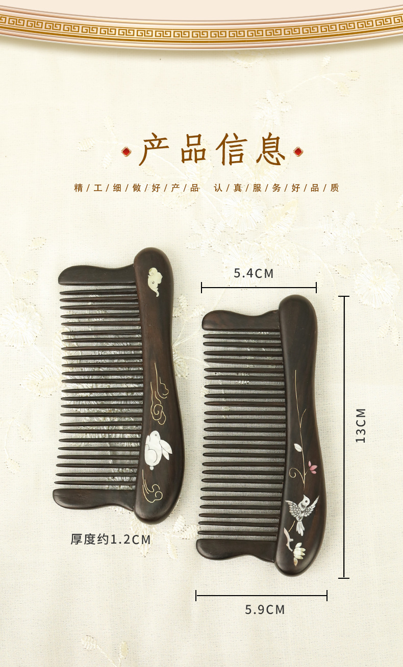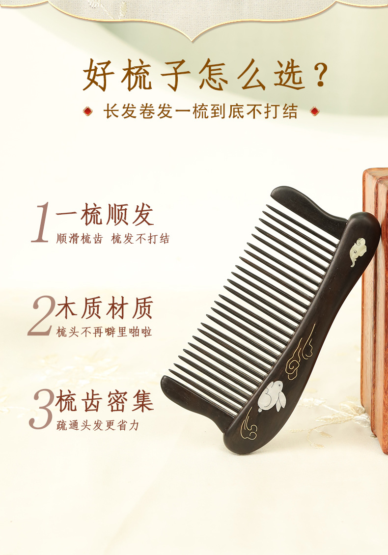 紫光檀螺钿鲍鱼贝插齿梳木梳子女士礼物批发密齿梳实木无漆家用梳