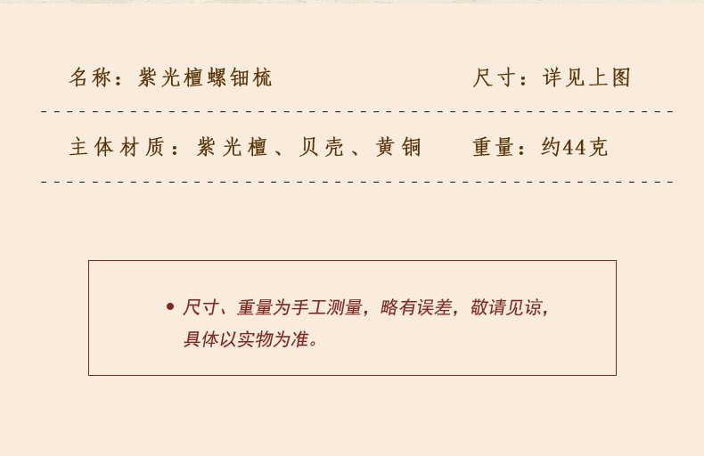 货号 缎光紫檀木梳