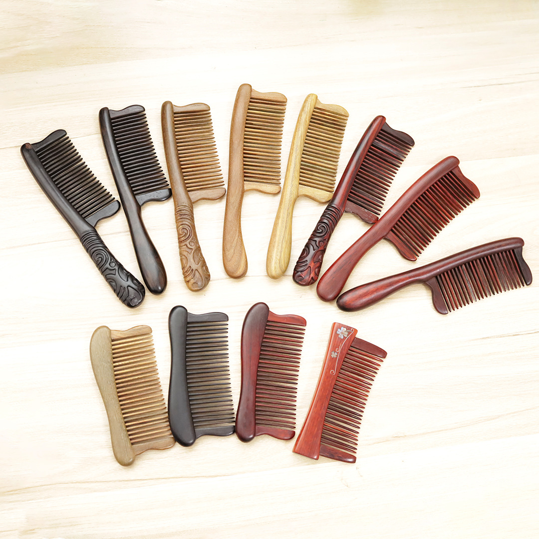 檀木雕花插齿梳子大号细齿女士顺发梳头家用实木便携伴手礼美发梳