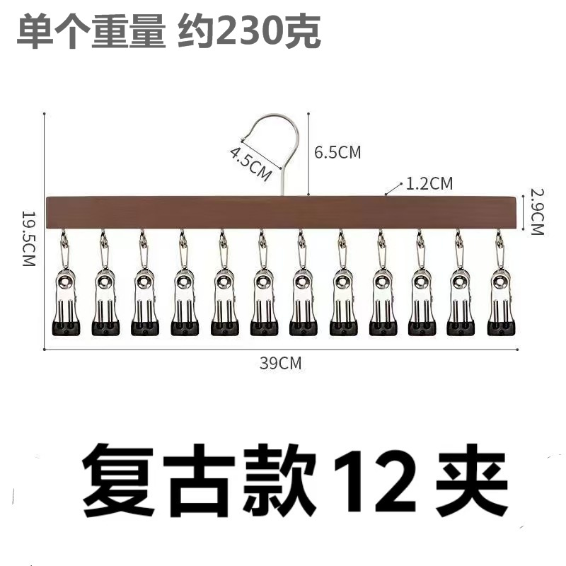 实木衣架多功能十二夹子袜子晾衣架衣柜帽不锈钢批发