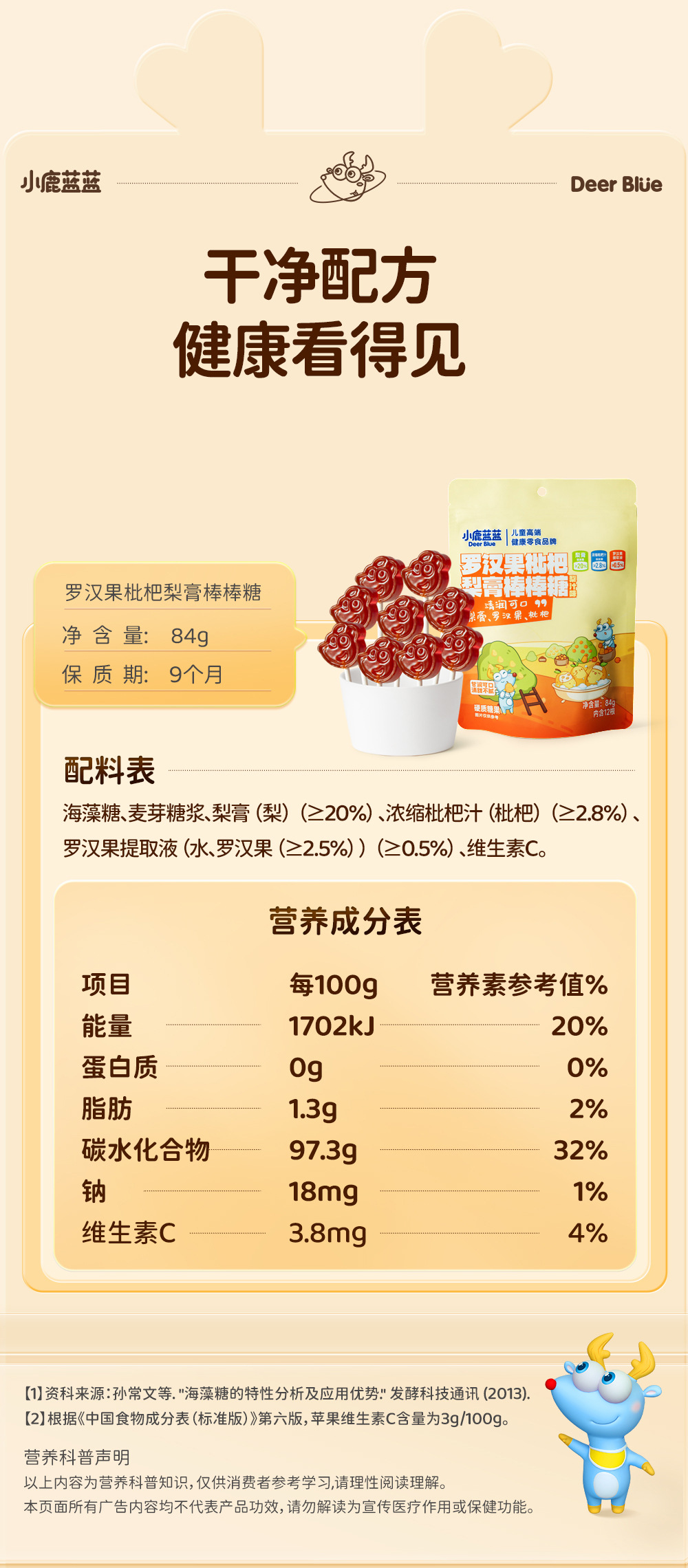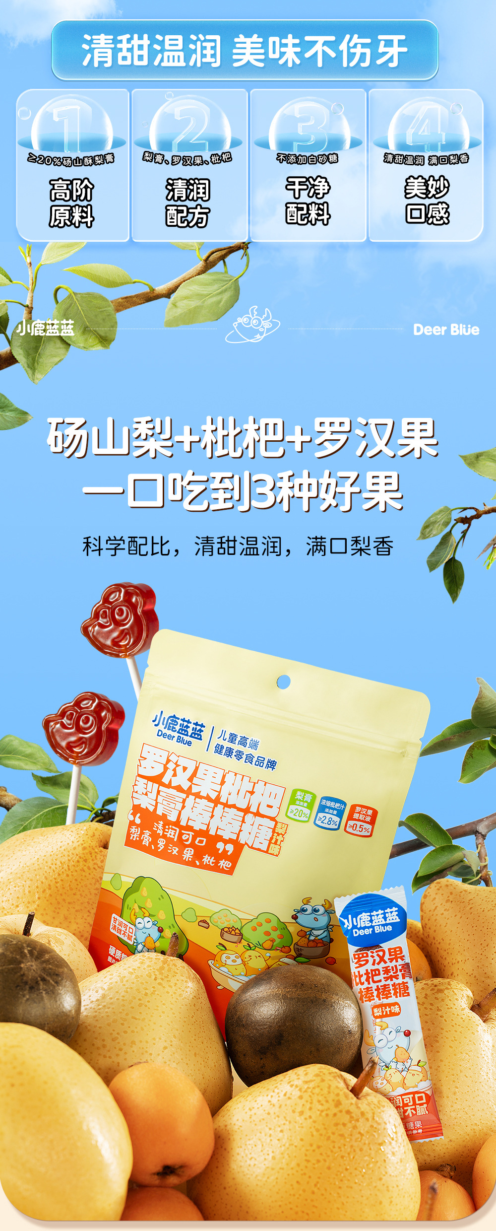 リトルディアランラン_羅漢果びわ梨ペーストロリポップスープサワー梨ジュースキャンディー健康子供スナックブランド