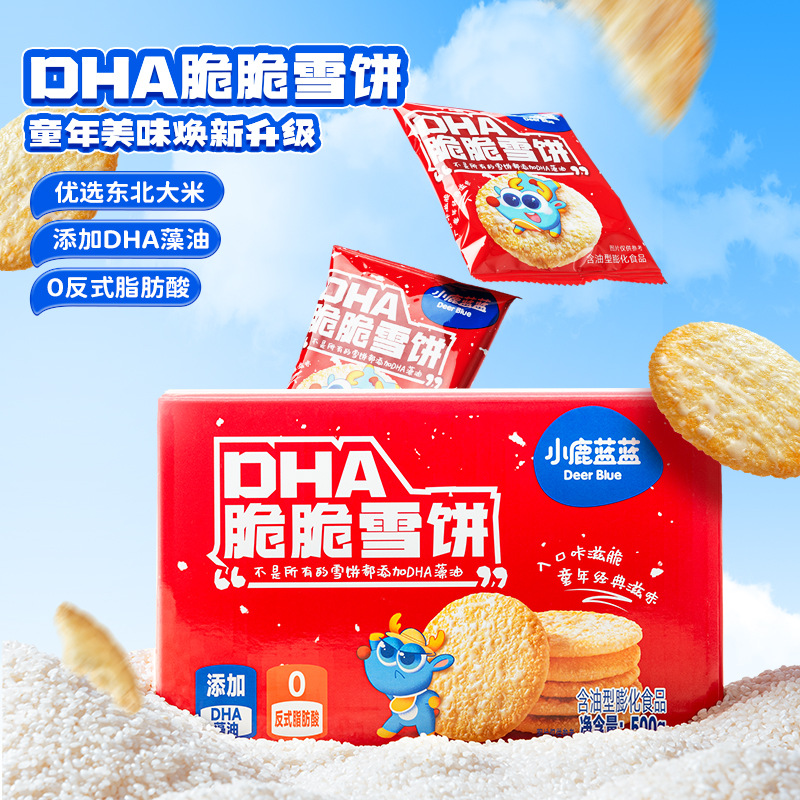【小鹿蓝蓝_DHA脆脆雪饼】0反式脂肪酸米饼磨牙饼干儿童零食品牌