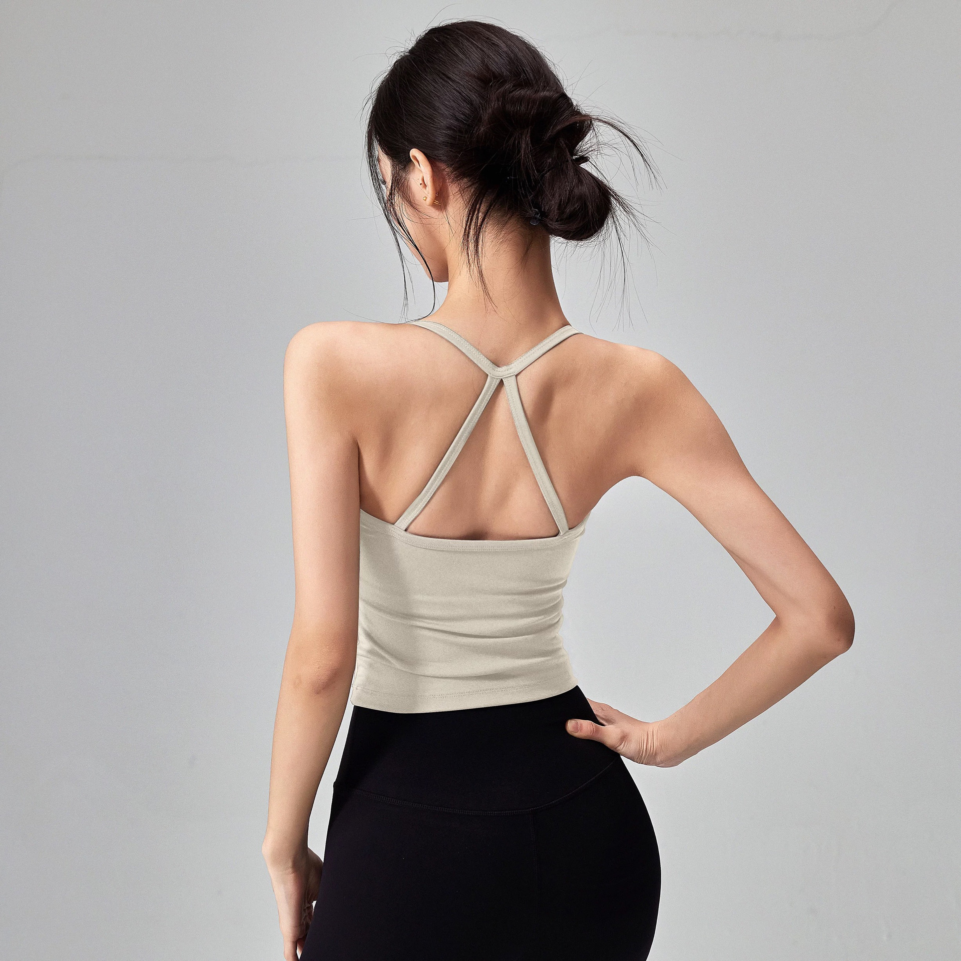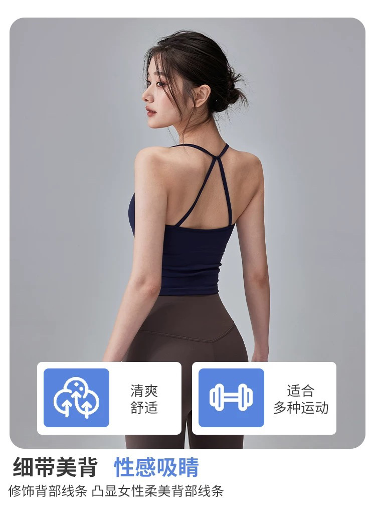 瑜伽挂脖背心带一体胸垫普拉提跑步健身吊带聚拢运动内衣美背塑形