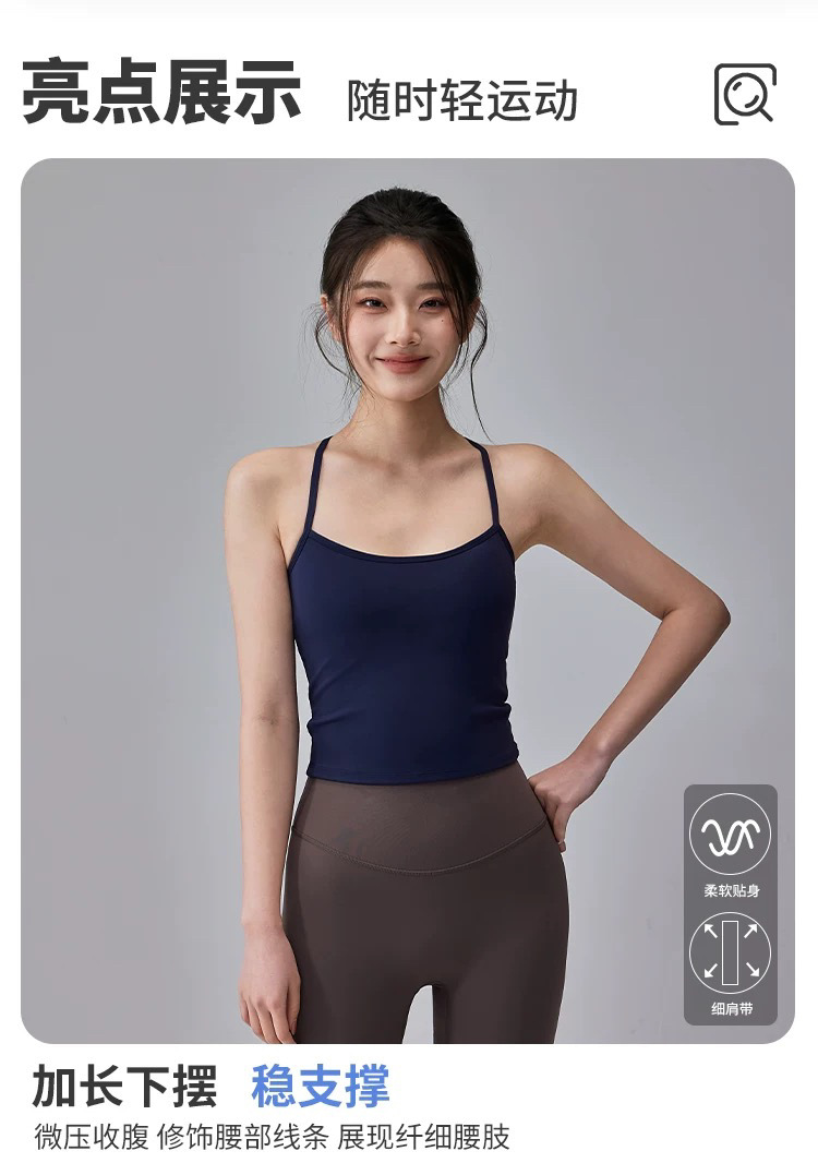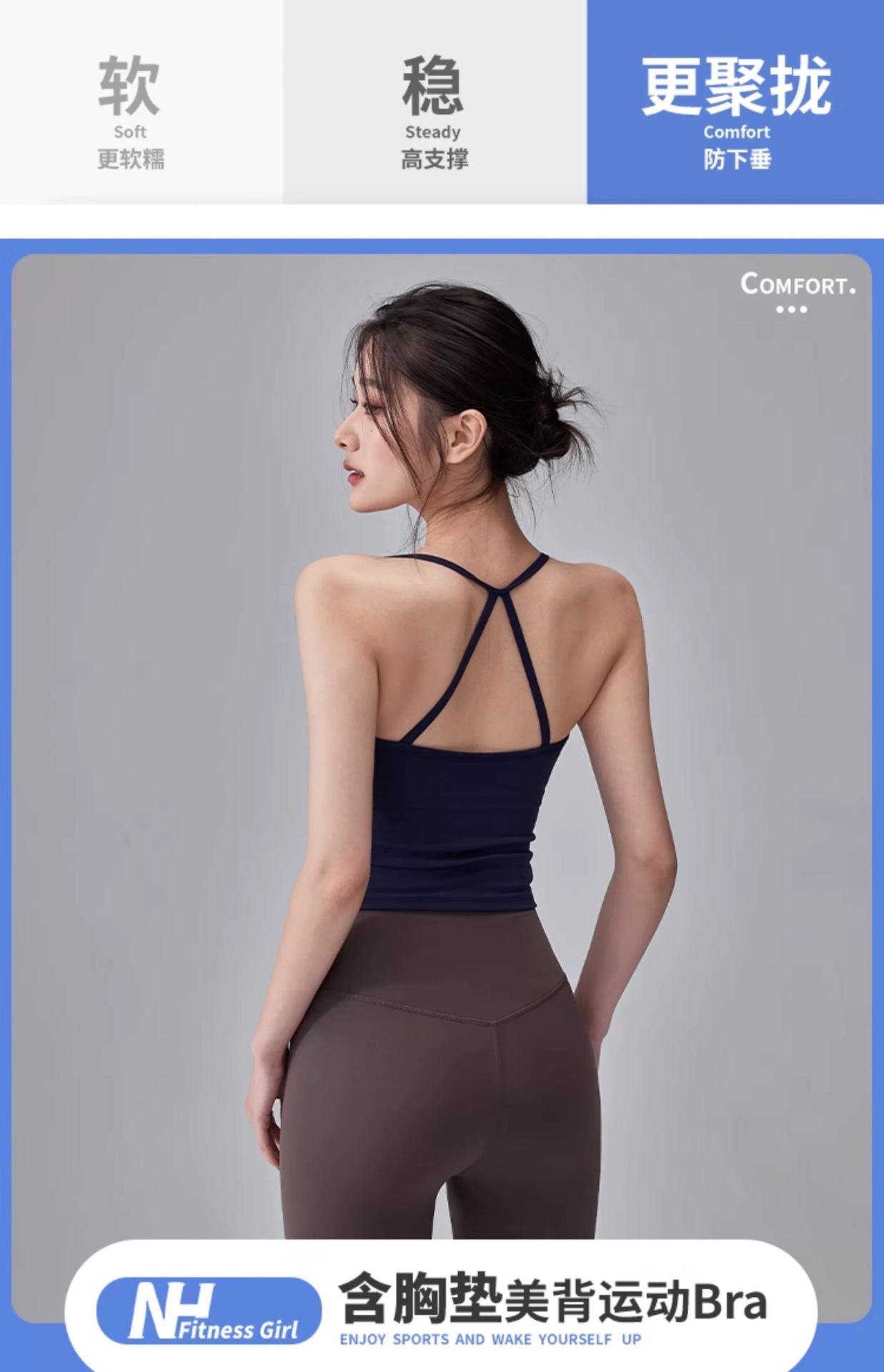 高颜值瑜伽健身背心带胸垫美背运动内衣防震聚拢跑步文胸吊带上衣