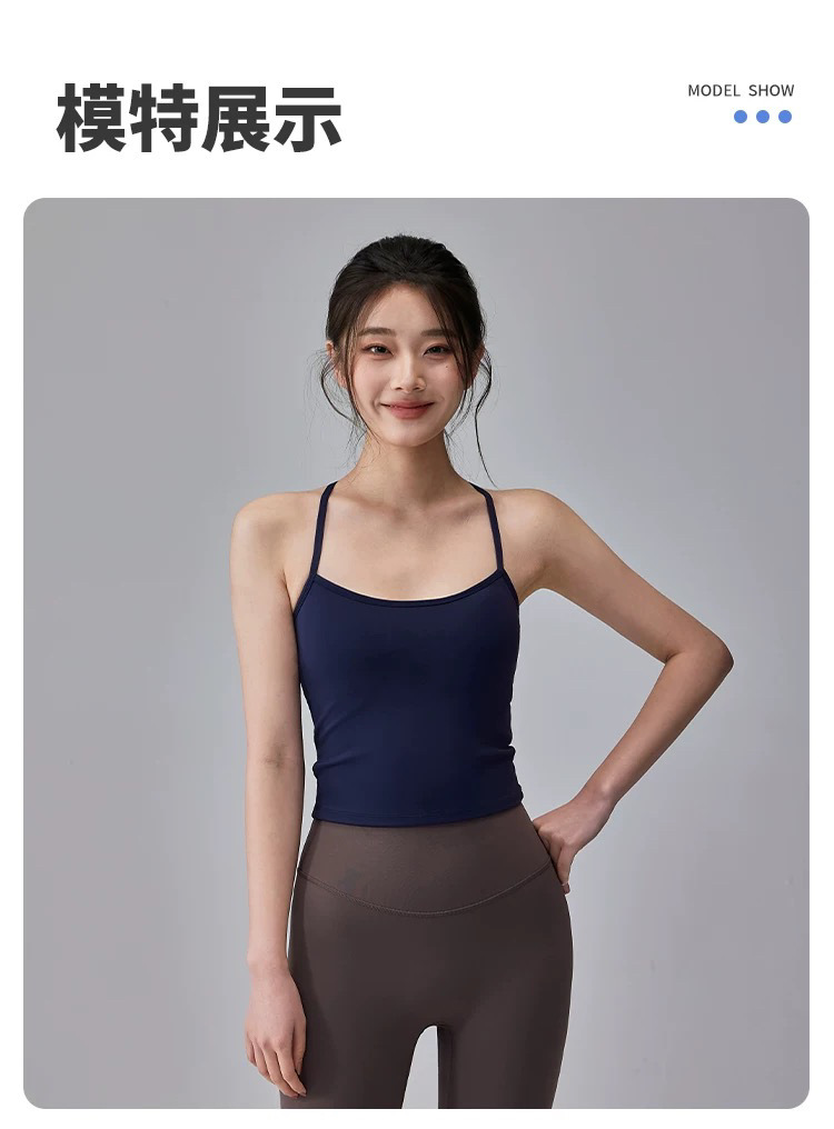 健身瑜伽背心女固定一体杯透气镂空美背吊带背心抽褶收腰运动背心