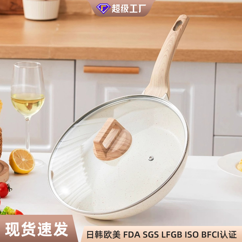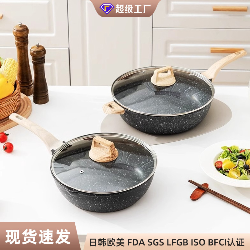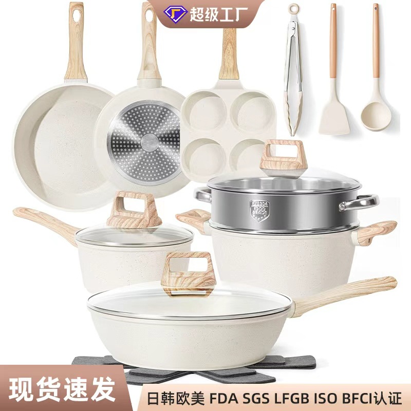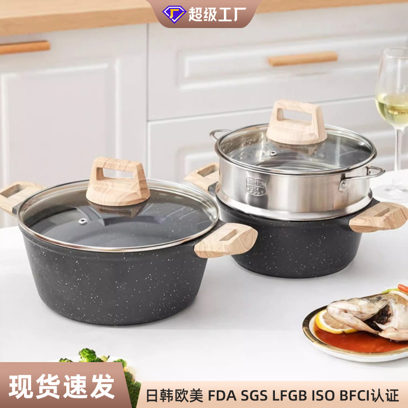 跨境家用可拆卸套装麦饭石高颜值炖煮蒸炒一体电磁炉平底锅炖奶锅