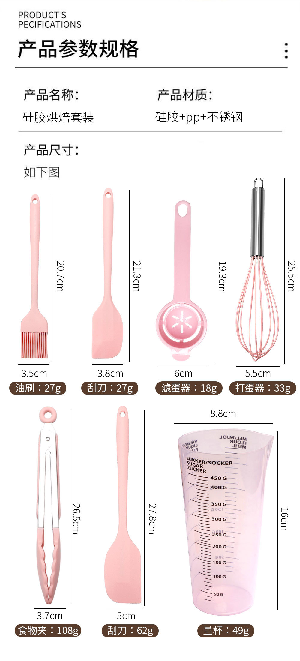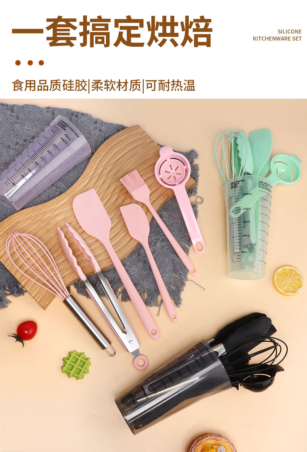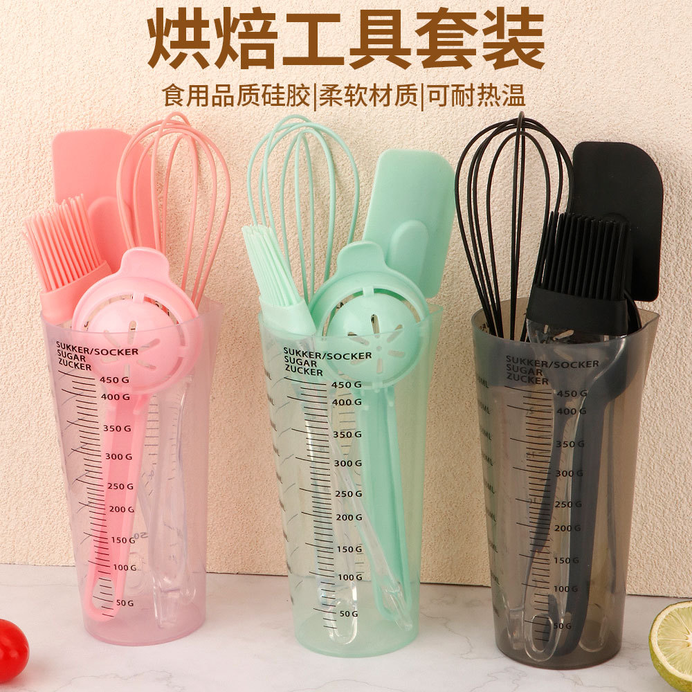 跨境烘焙硅胶刮刀油扫打蛋器带刻度量杯套装家用蛋糕硅胶工具套装