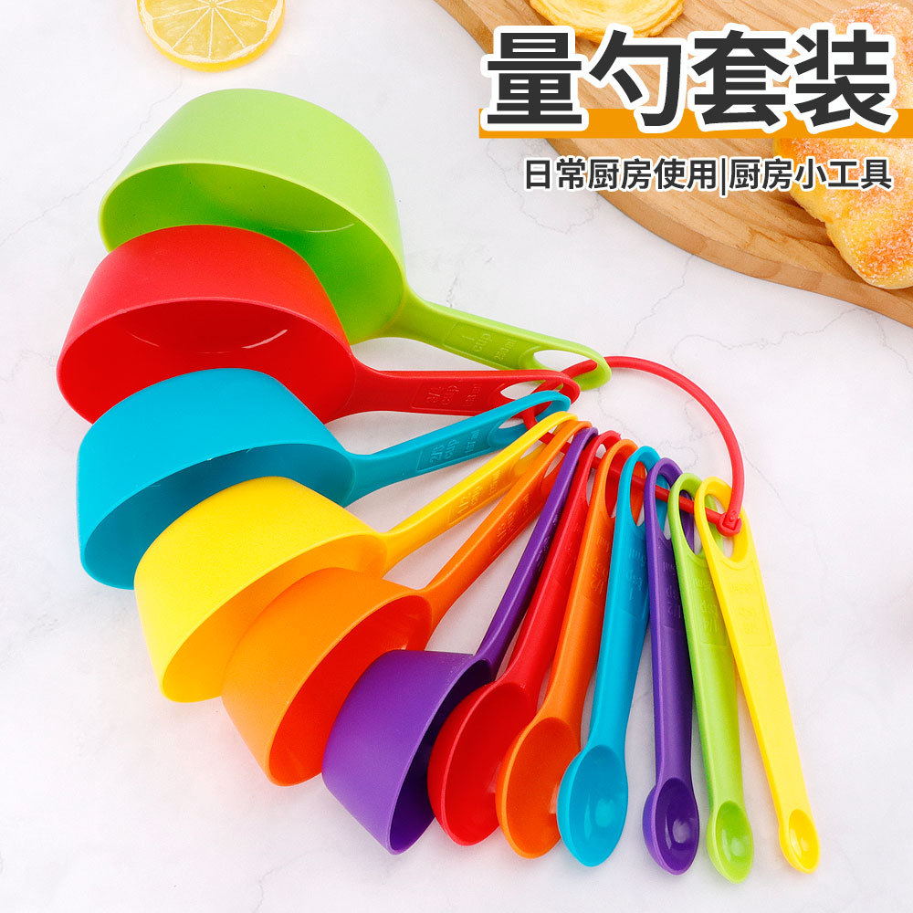 批发量勺量杯10件套装 DIY蛋糕烘焙工具奶粉勺带刻度塑料量杯量勺