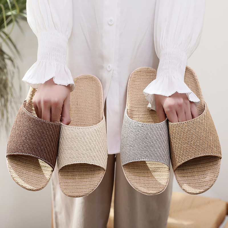 オールシーズン対応の女性用屋内ホームリネンスリッパ、通気性、吸汗性、臭いのない足、男性用木製床ミュートスリッパ