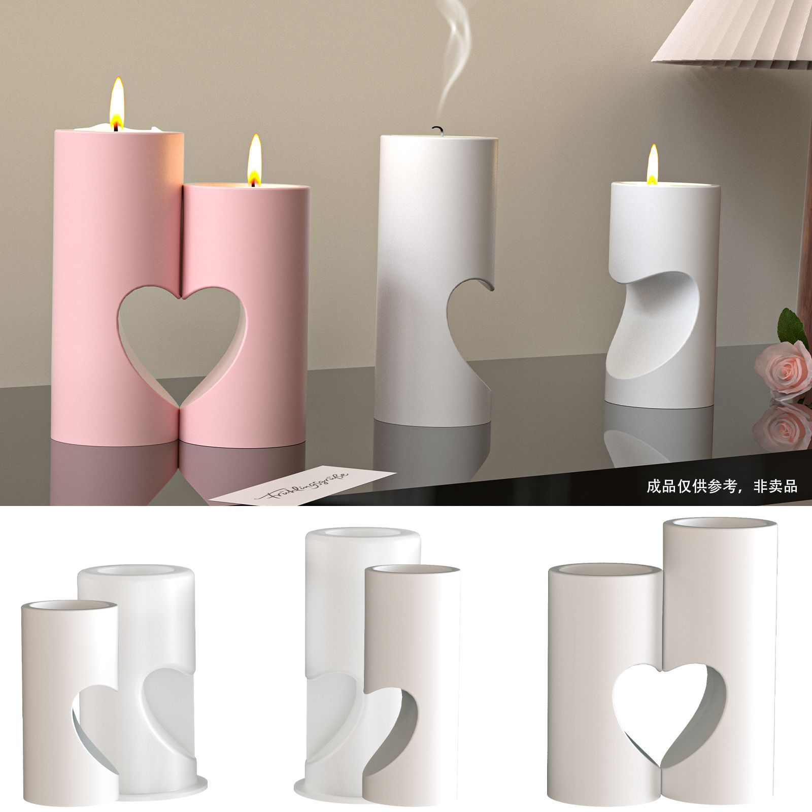 虞美人 圆柱拼图爱心烛台摆件硅胶模具diy情人节氛围蜡烛灯石膏模