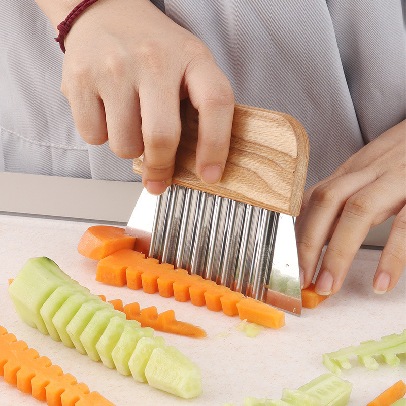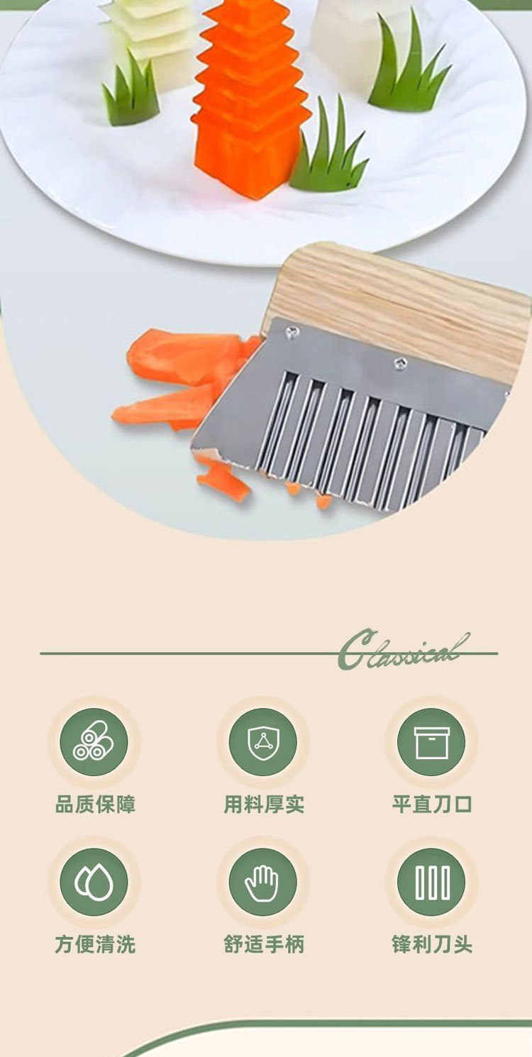 现货西湖宝塔雕刻刀豆薯条切不锈钢狼牙土豆切厨房餐厅家用波浪刀