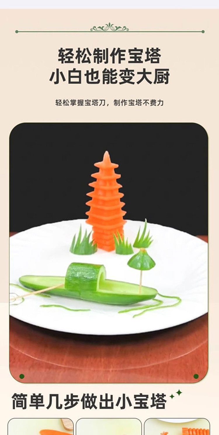 新款果蔬宝塔刀不锈钢果蔬雕刻模具冷菜装饰雕花工具波浪纹土豆切