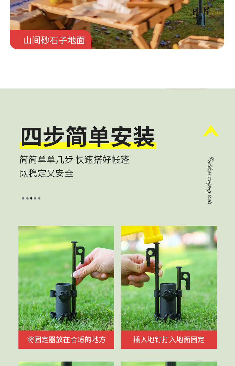 户外露营天幕杆固定器帐篷支架遮阳棚支撑杆地钉配件撑杆调节底座
