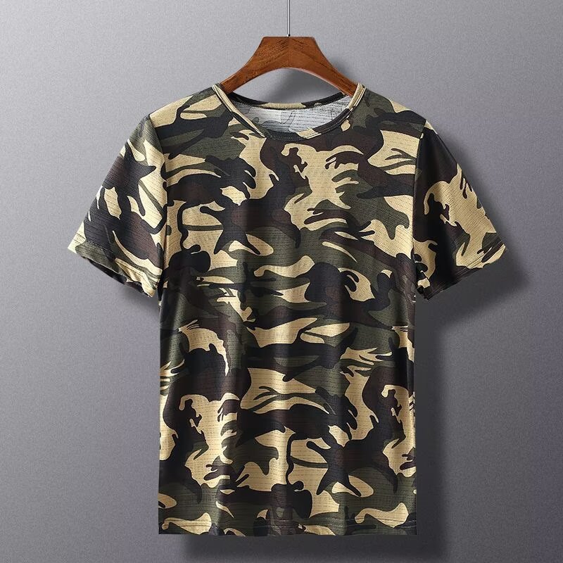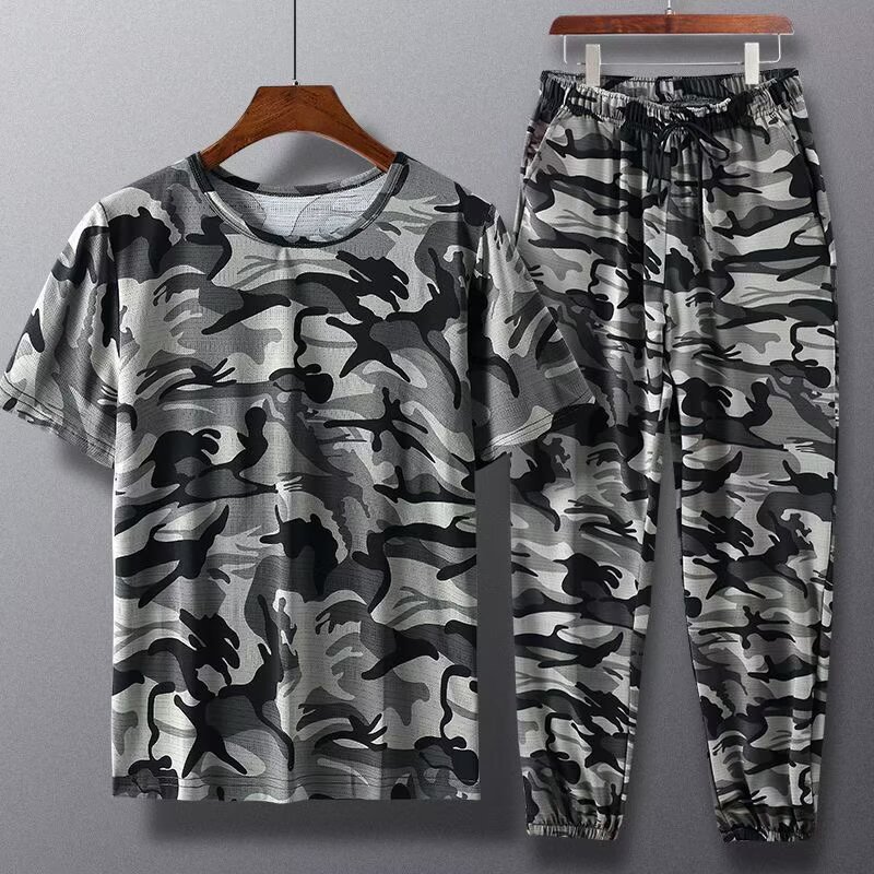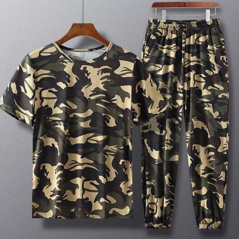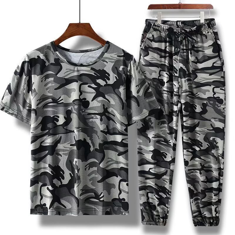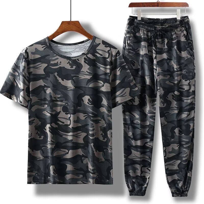 迷彩半袖スーツメンズ通気性アイスシルクTシャツ速乾性メッシュ夏薄手作業レギンストレーニングスーツ