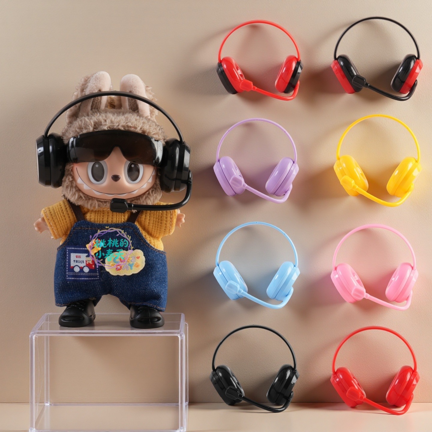 17CM拉布布耳机娃娃配件labubu耳机耳麦可旋转适配KT玩偶装饰