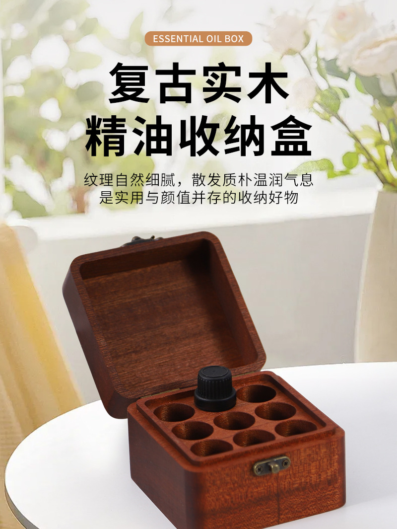 木质精油收纳盒原木色精油雕刻木盒桌面收纳整理盒现货批发