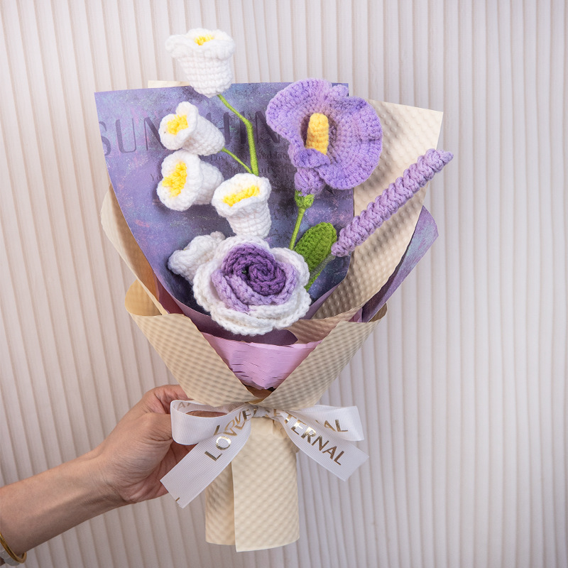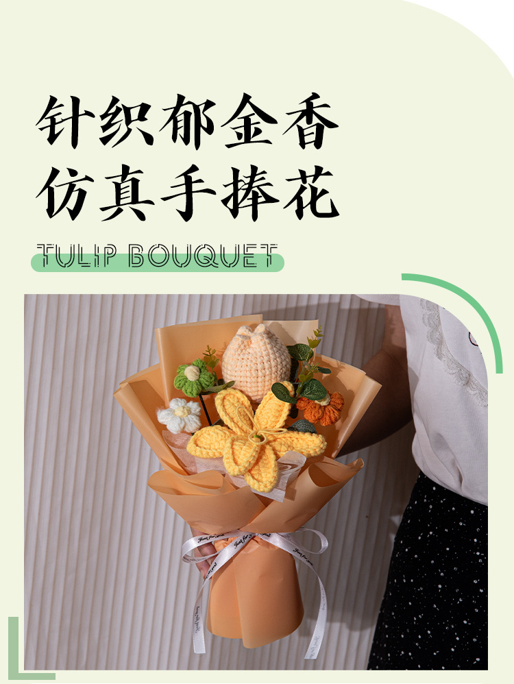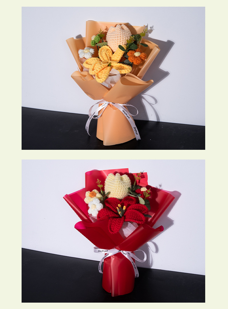 女神节百合郁金香针织小花束毛线手工编织花三八妇女节礼物送员工