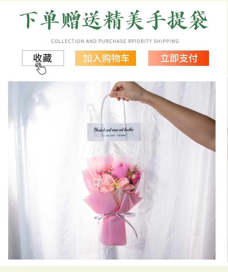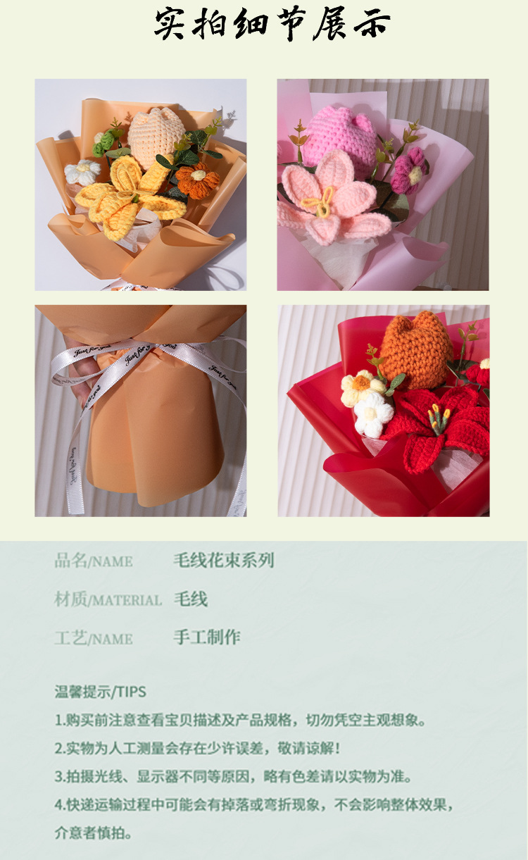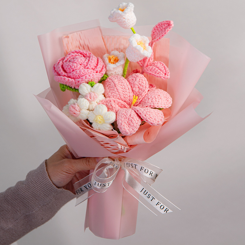 女神节针织毛线混搭花束成品玫瑰花郁金香编织花三八妇女节礼物花