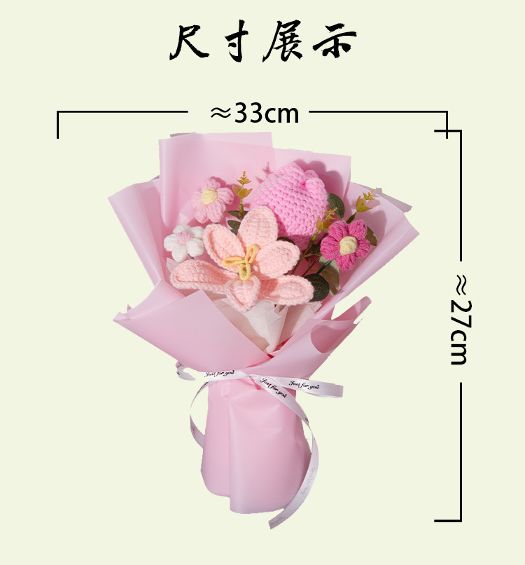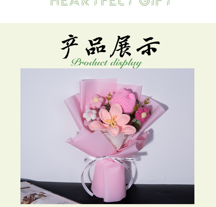 女神节玫瑰针织花束爱心毛线编织花三八妇女节礼物跨境外贸爆品