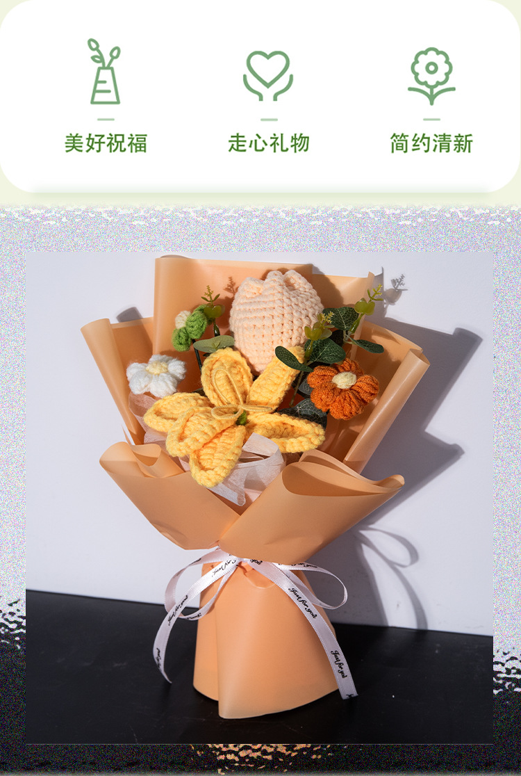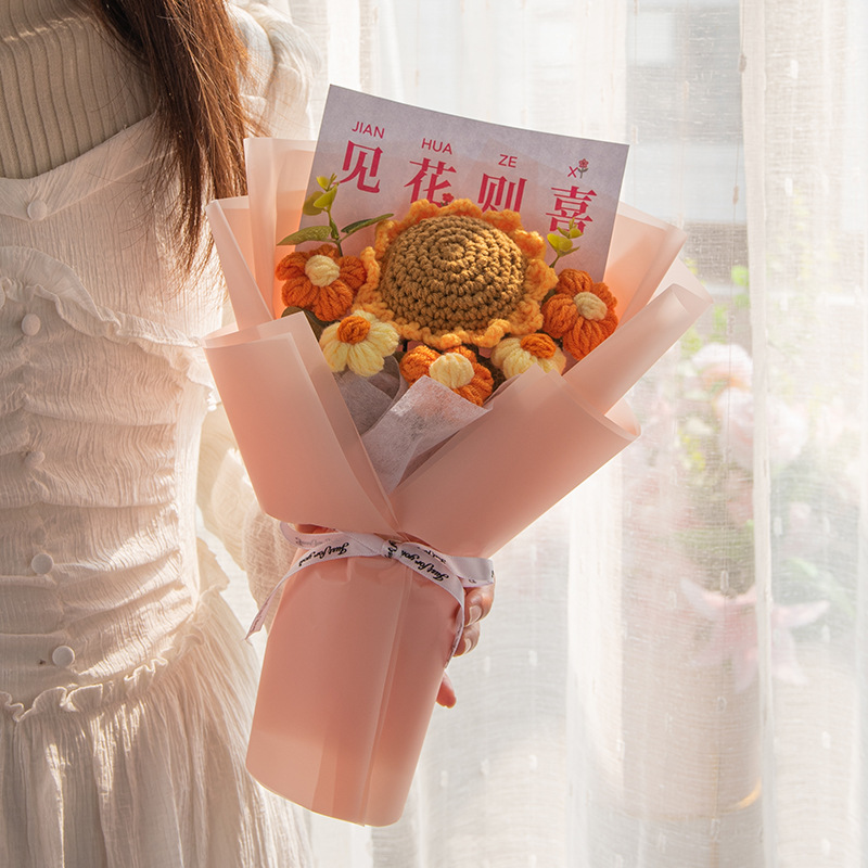 クロスボーダー毛糸ブーケ、ニットフラワー完成品、手編みフラワー、笑顔のひまわり、彼女や親友へのギフト