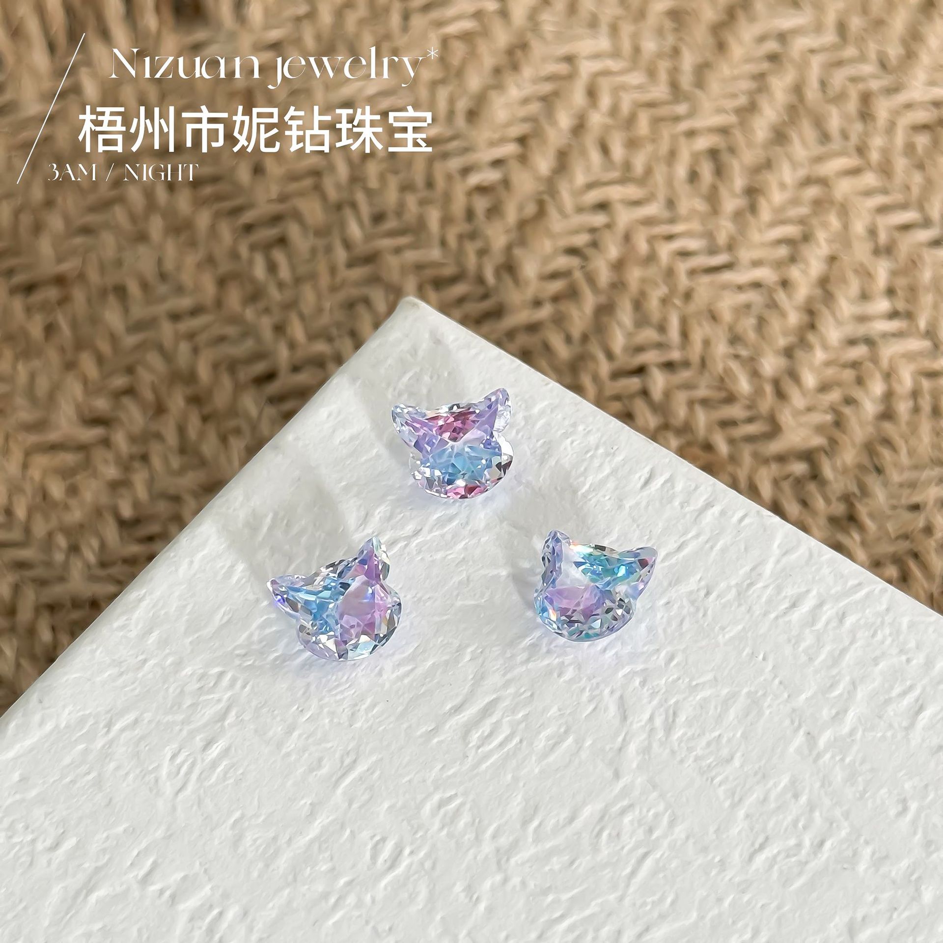 メーカー直販、レアグラデーションキャットヘッドピアス、ネイルアクセサリー、ジルコンニッチデザイン、万能ルースストーン