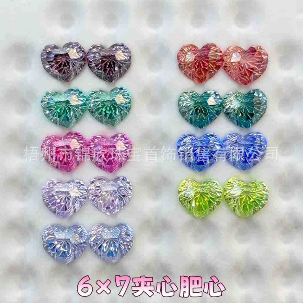 烟花切6×7胖爱心肥心镀底单色夹心锆石裸石饰品镶嵌 DIY裸石