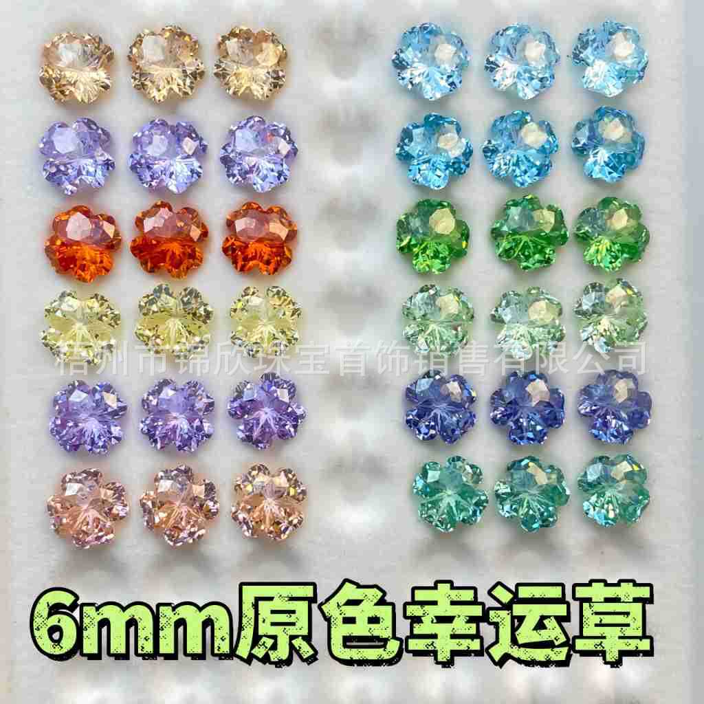 6mm 原色幸运草心形四叶草锆石裸石耳钉首饰镶嵌 DIY 材料配石