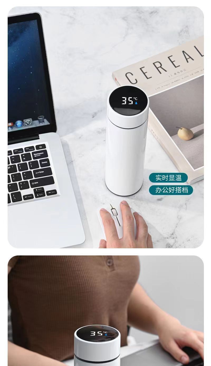 スマート温度測定断熱カップ 304 二重層ステンレス鋼ウォーターカップ車載ビジネスギフト温度カップ卸売レタリングロゴ付き