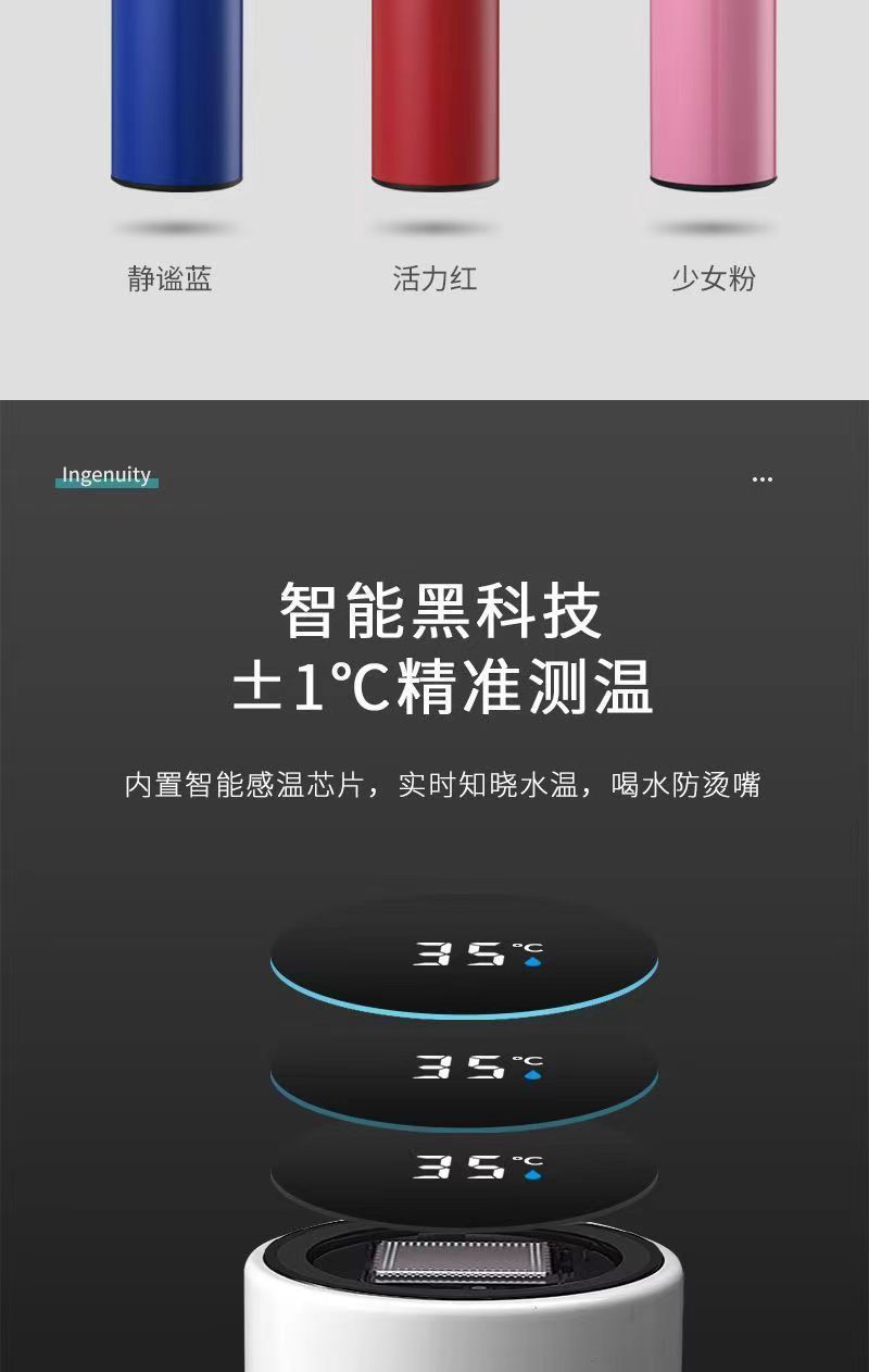 304不锈钢智能保温杯温显示测温办公水杯商务定logo礼品数显直杯
