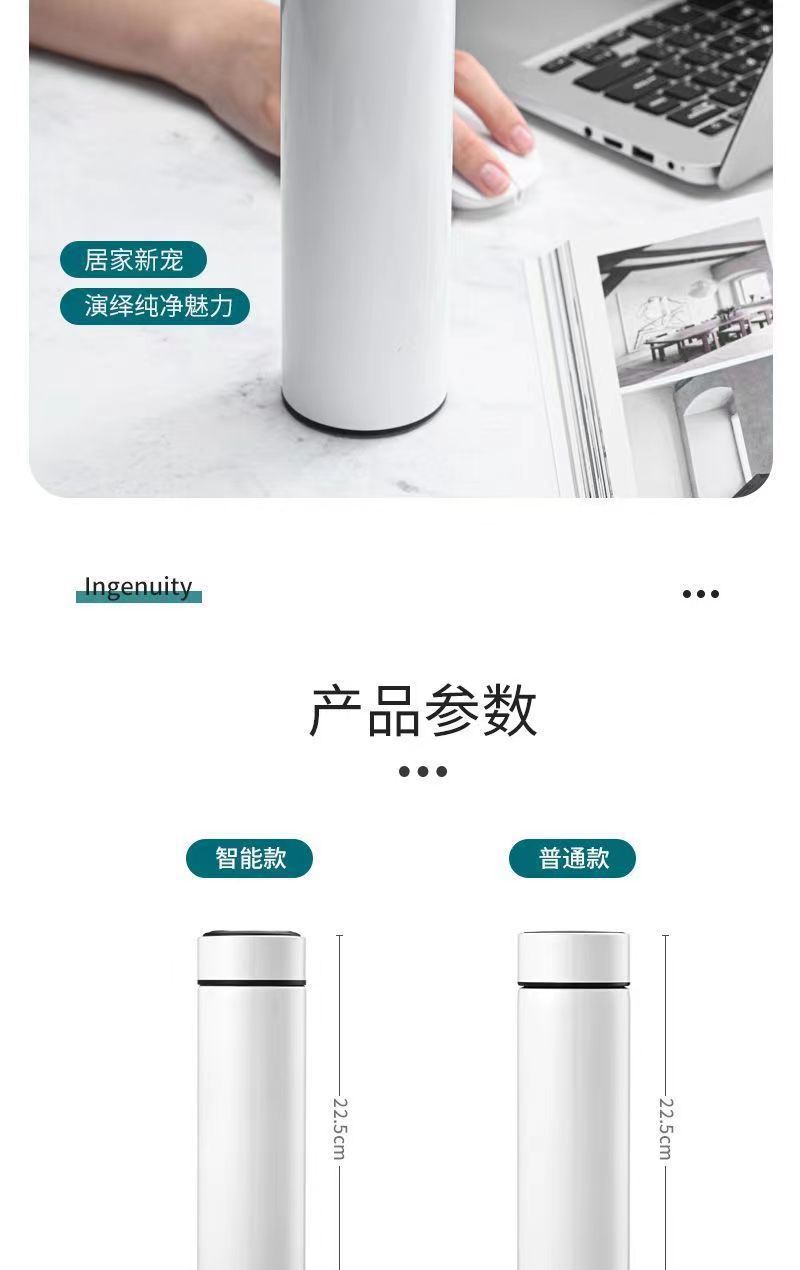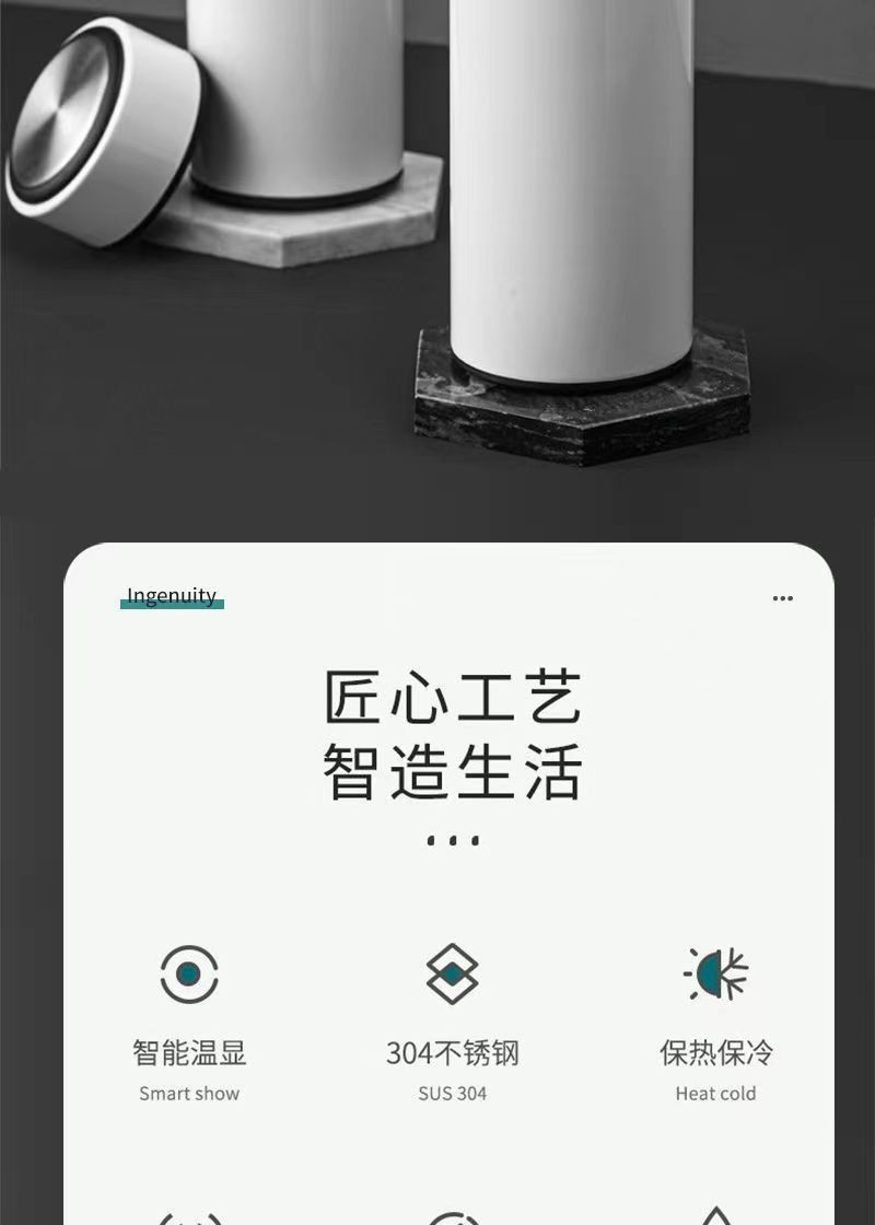 跨境智能显温直身杯304不锈钢保温杯商务活动礼品杯定制刻字logo