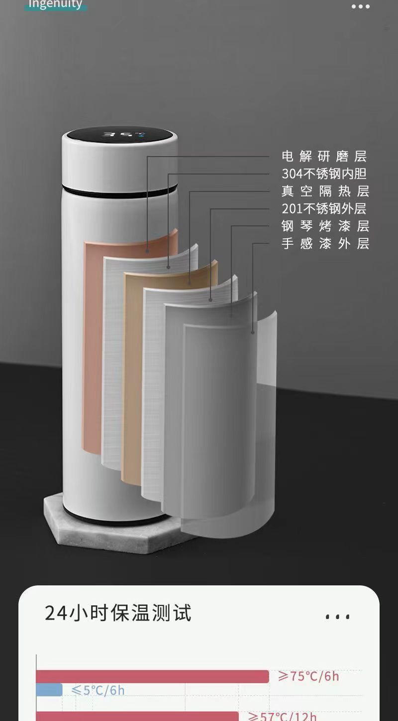 国境を越えたステンレス保温カップ高級大容量カップ温度表示ティーカップギフトカップ刻印ロゴ