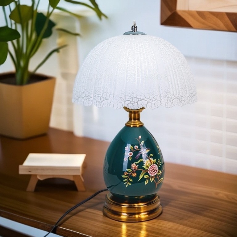 ♡ 布製花柄テーブルランプ 寝室ベッドサイドランプ ホテル民宿 田園風陶器装飾 雰囲気田園風装飾