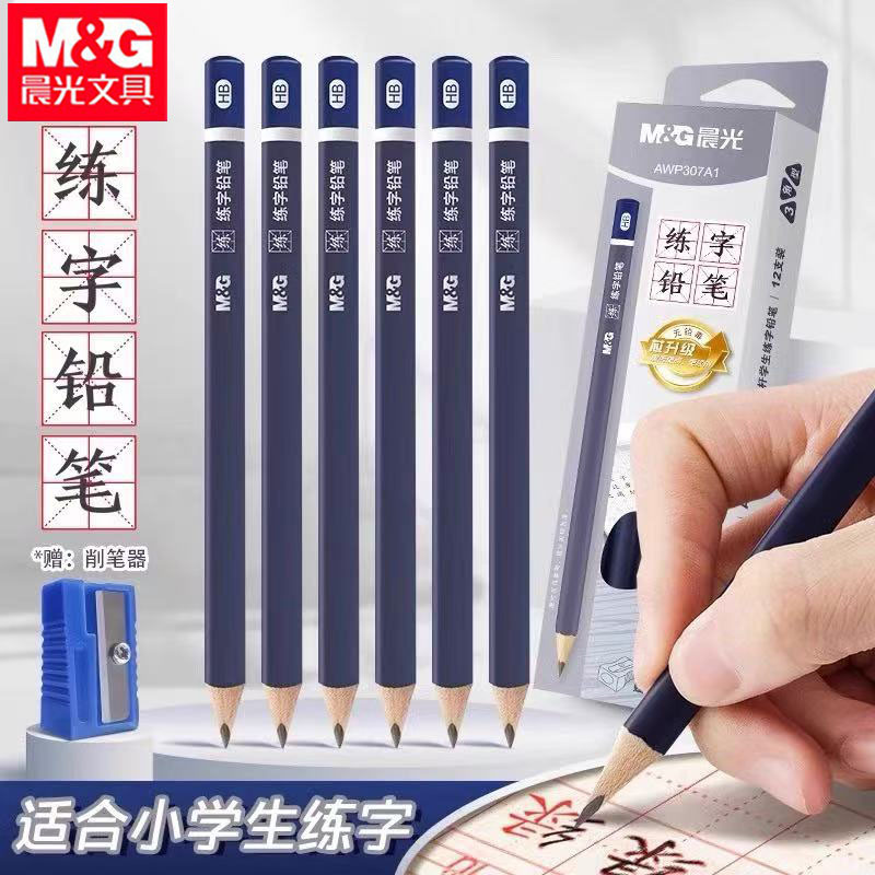 晨光练字铅笔小学生用木杆铅笔三角杆易握练字书法幼儿粗杆HB铅笔