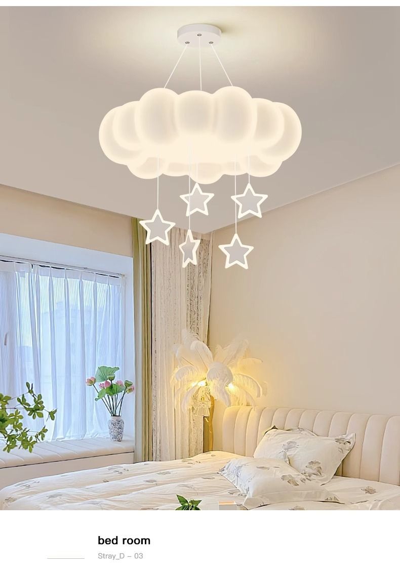 フルスペクトル目の保護子供部屋クラウドシーリングランプマスターベッドルームランプクリームスタイル暖かいシンプルモダンガールシャンデリア