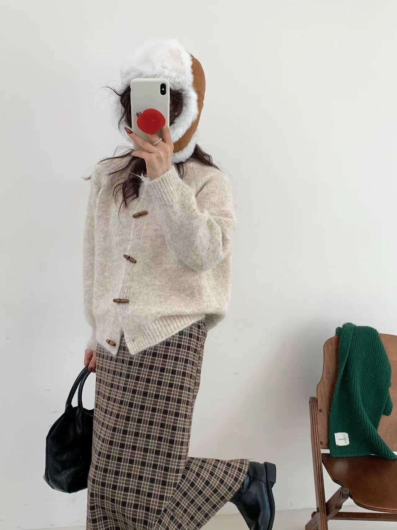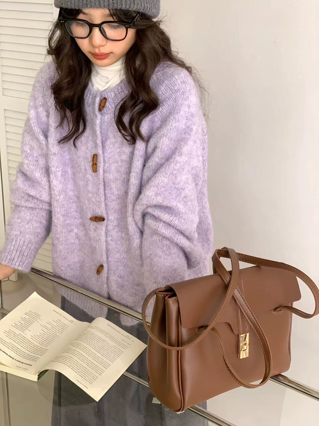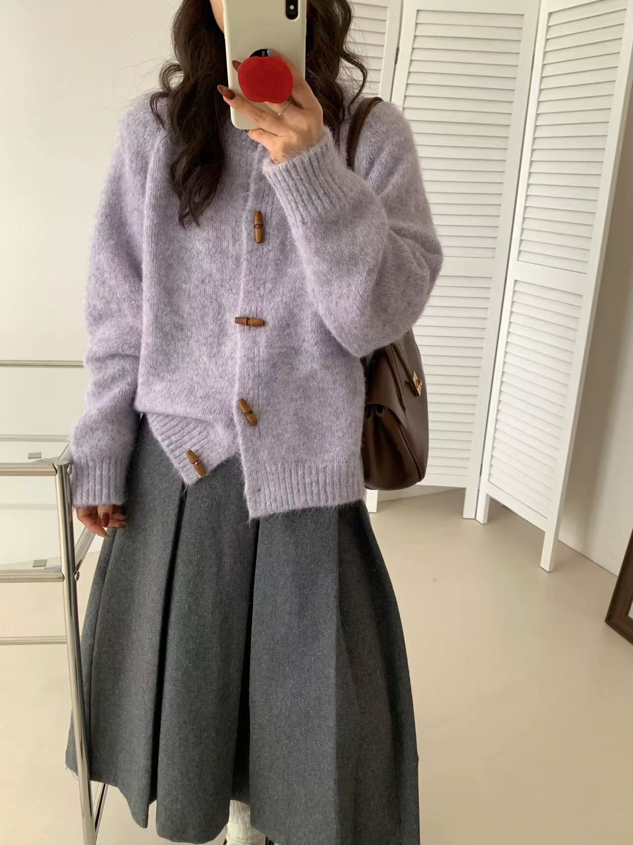 温柔风圆领牛角扣针织开衫女2025秋冬季新款女装宽松软糯毛衣外套