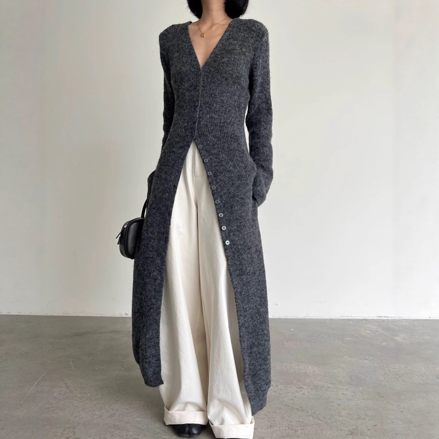 Длинный кардиган长款过膝气质针织开衫外套女