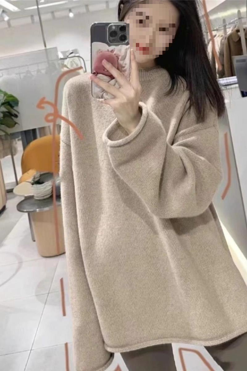 秋冬圆领羊绒衫女加厚宽松慵懒风毛衣中长款遮屁股羊毛针织打底衫