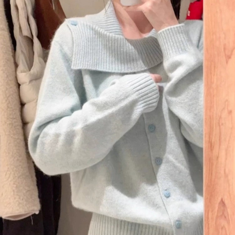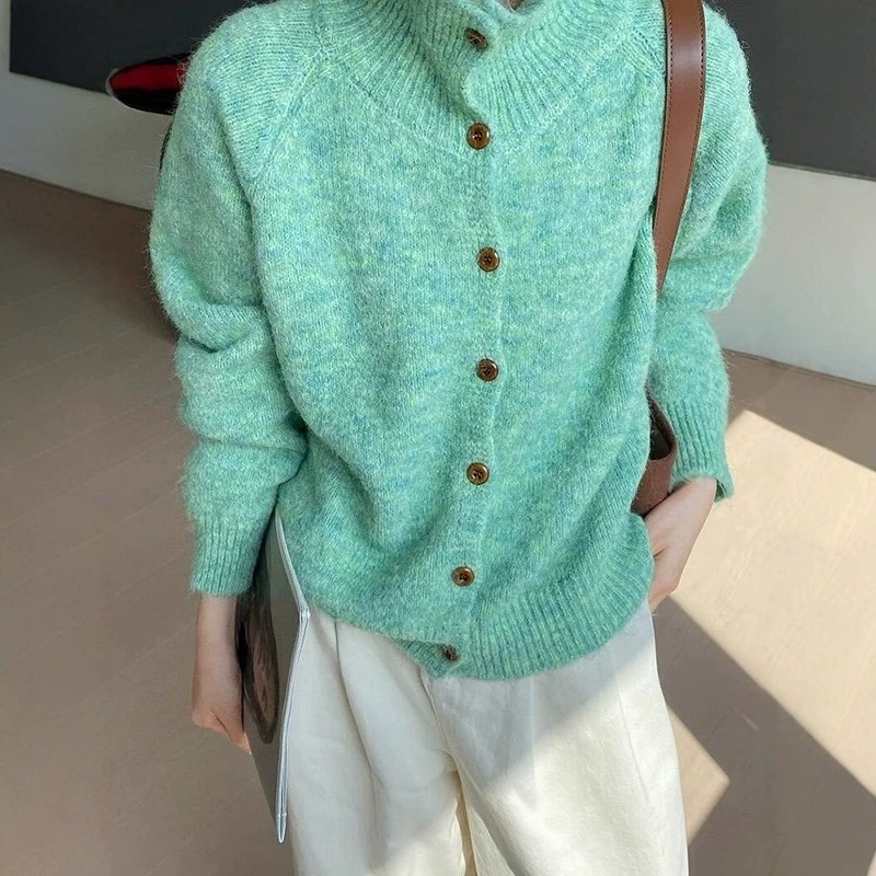 单排扣立领羊毛开衫女2025秋冬高级感慵懒风宽松针织外套潮毛衣