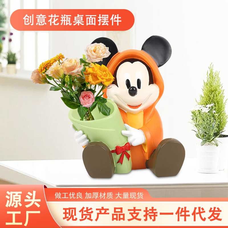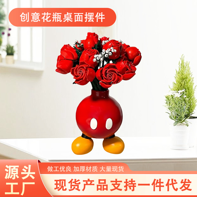 かわいいファットミッキーベースミッキーテーブルビルディングブロックローズブーケ小さな花瓶クリエイティブフラワーアレンジメント装飾品