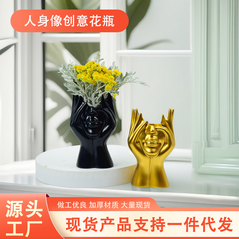 新しい樹脂花瓶、顔、人間の手、頬を支える花瓶、家庭用家具、デスクトップ装飾、フラワーアレンジメントの容器