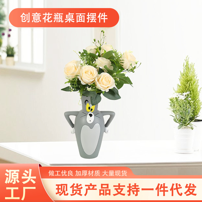 漫画トムとジェリー変形花瓶トム猫工芸品樹脂ボトル家の装飾小さな装飾品
