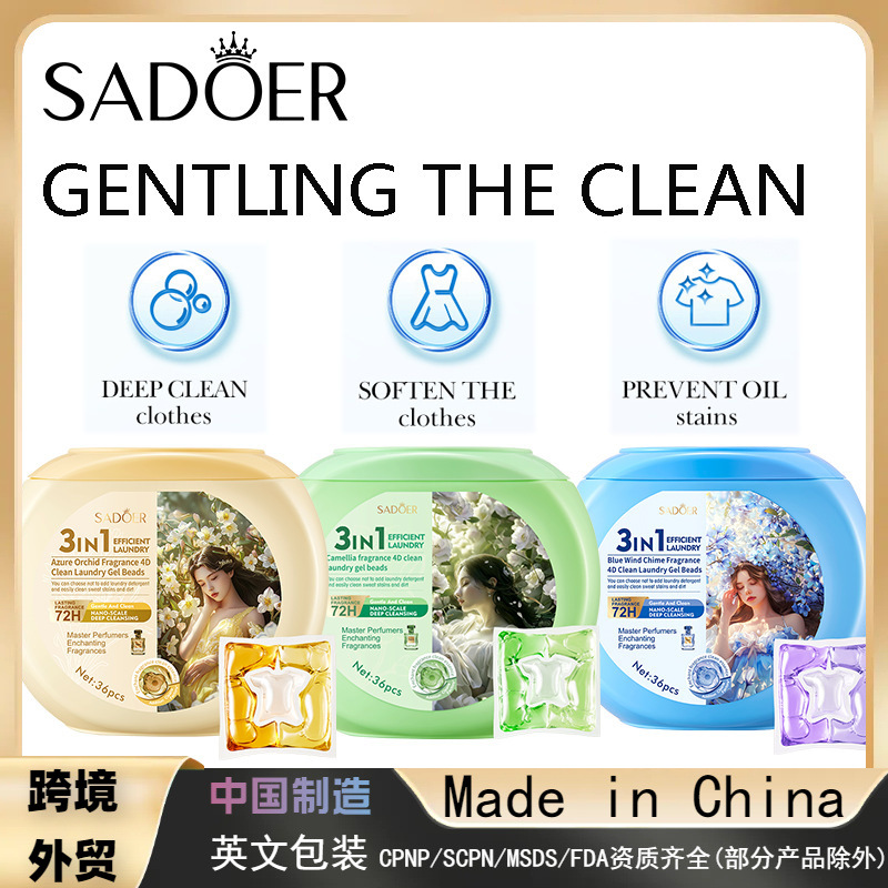 全英文SADOER小苍兰香氛4D洁净洗衣凝珠清洁衣物凝珠跨境外贸批发
