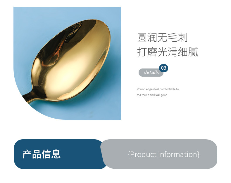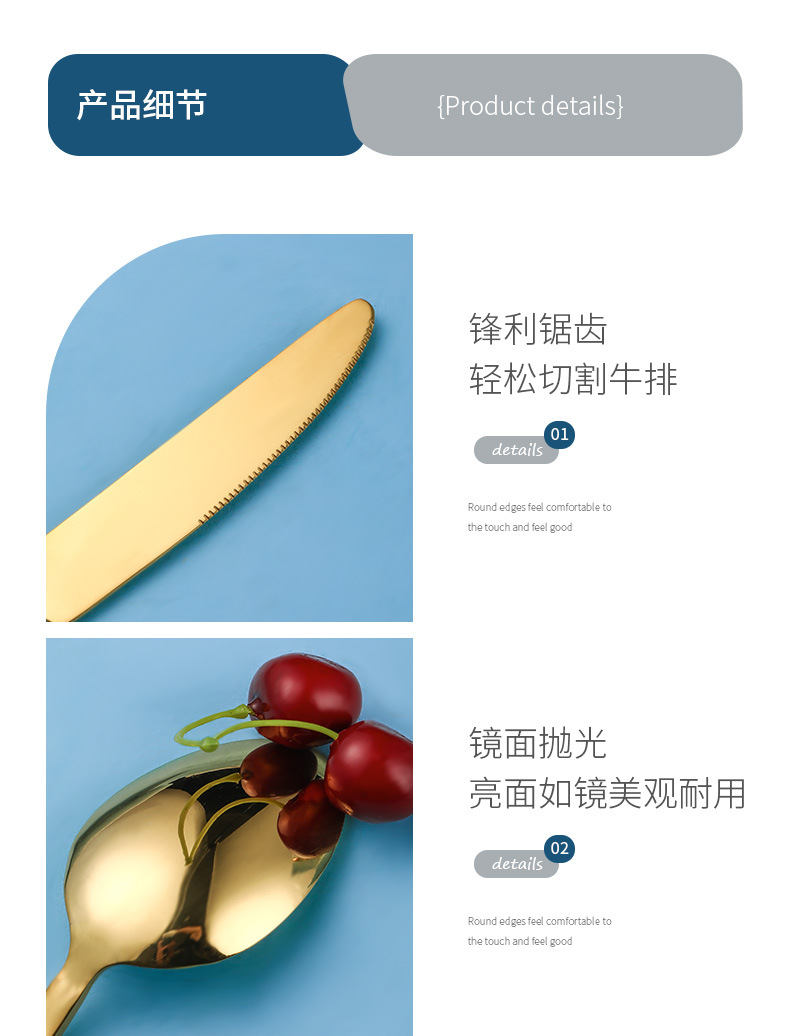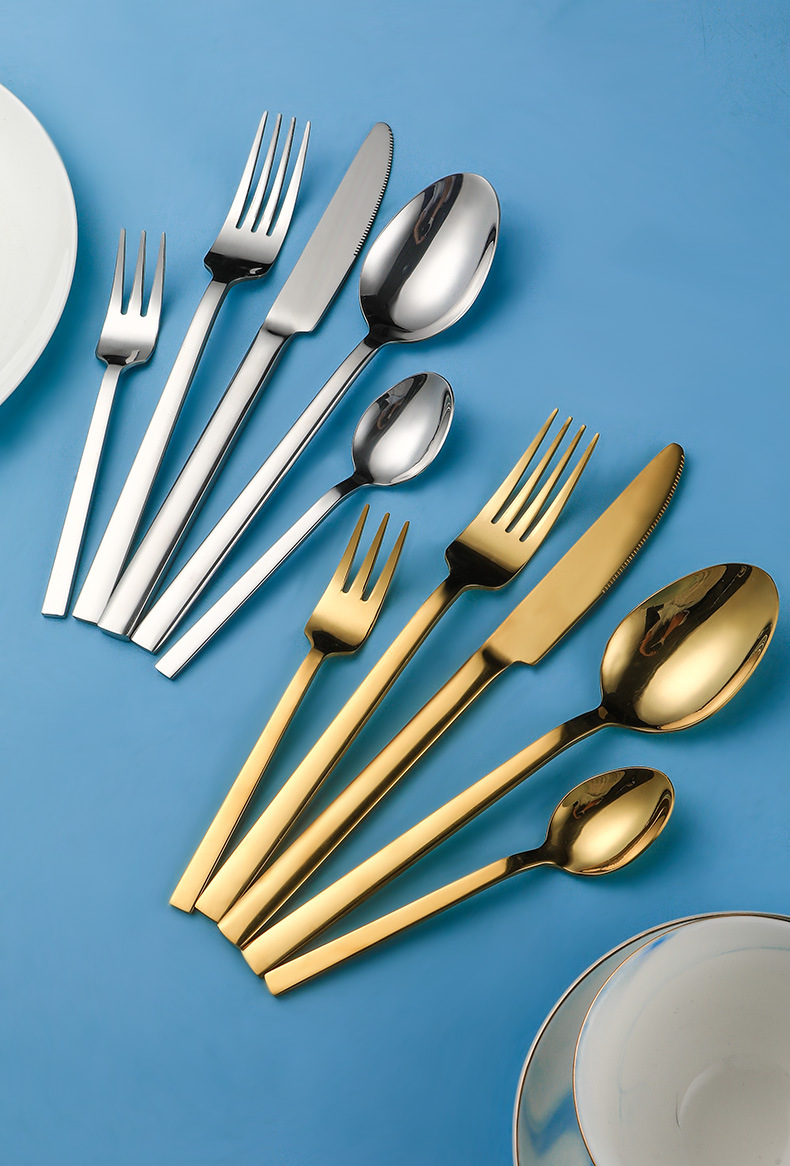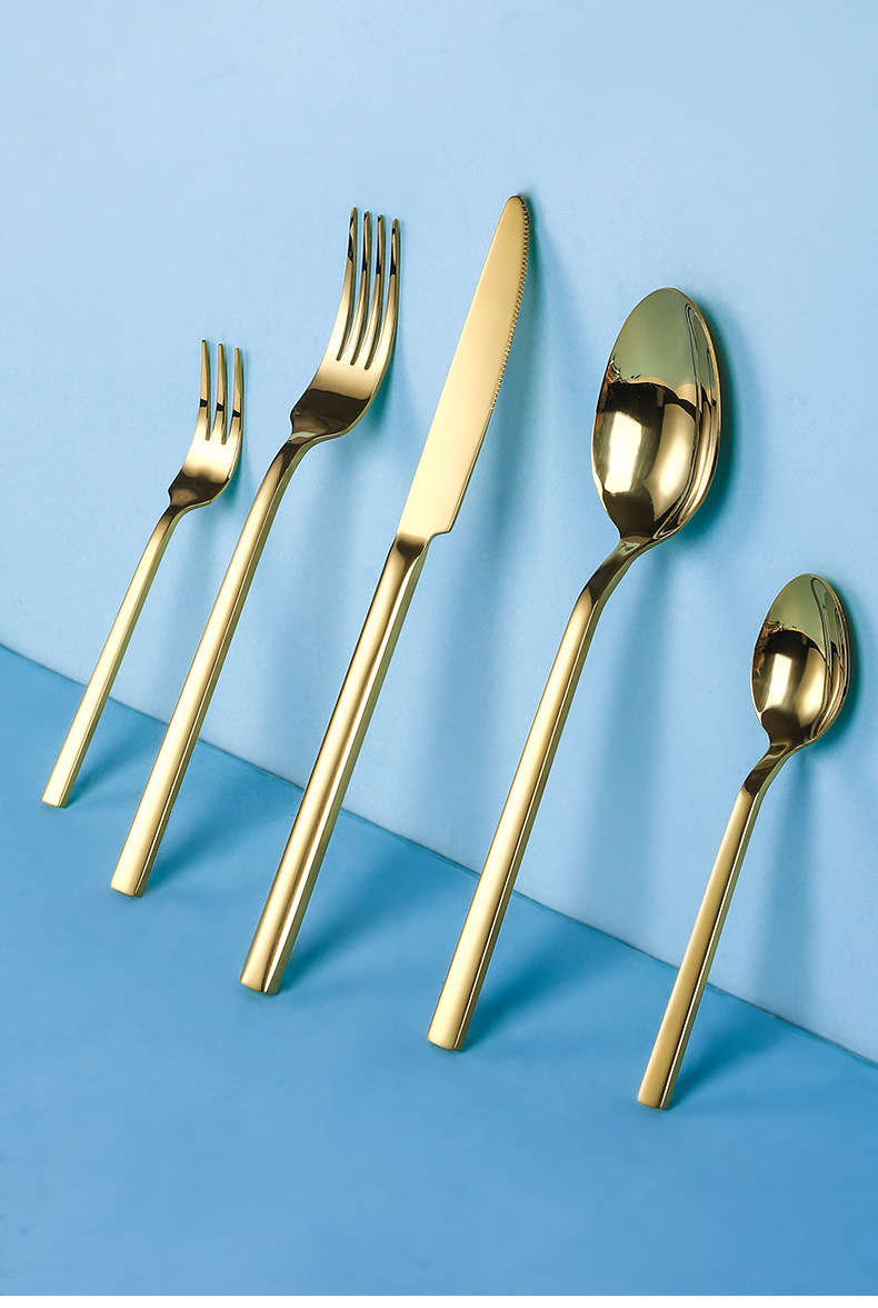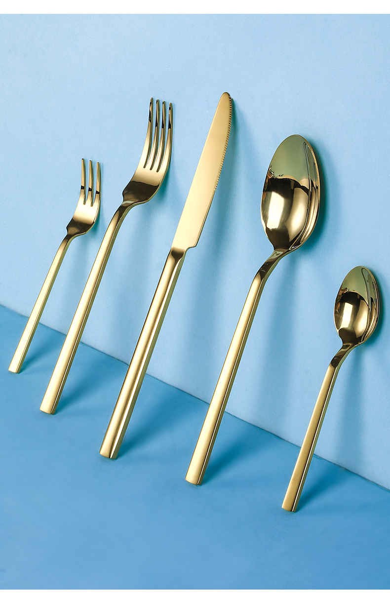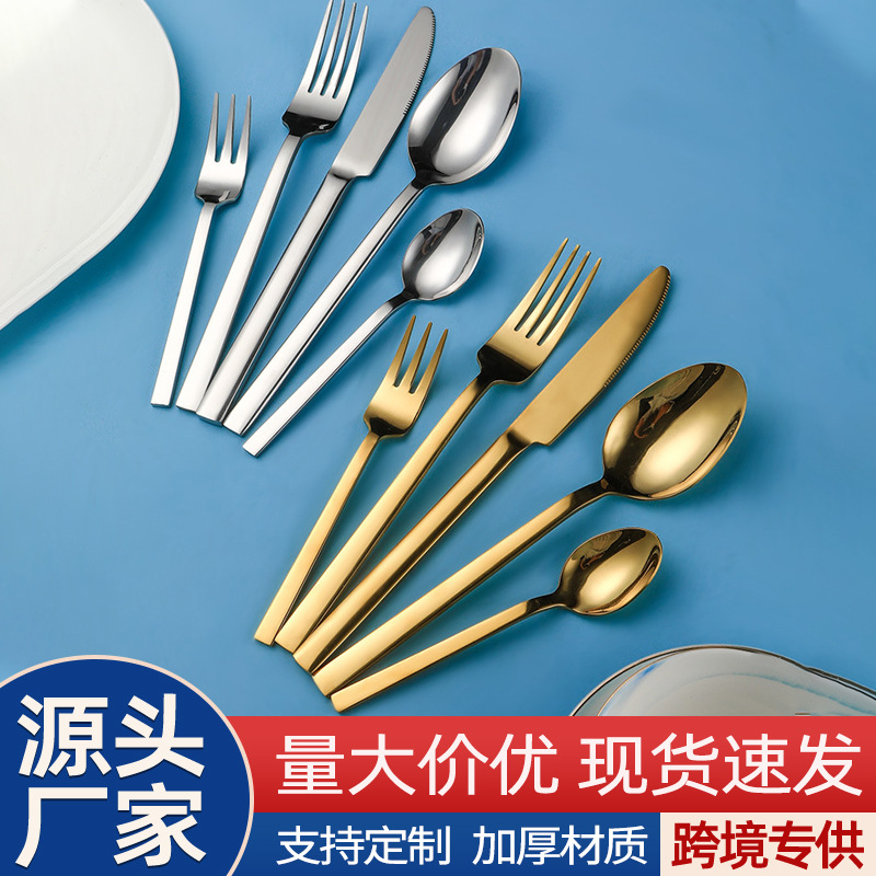 クロスボーダー角ハンドルステンレス鋼ナイフ、フォーク、スプーン、金メッキ厚みのあるホームホテルレストランステーキデザート洋食器セット