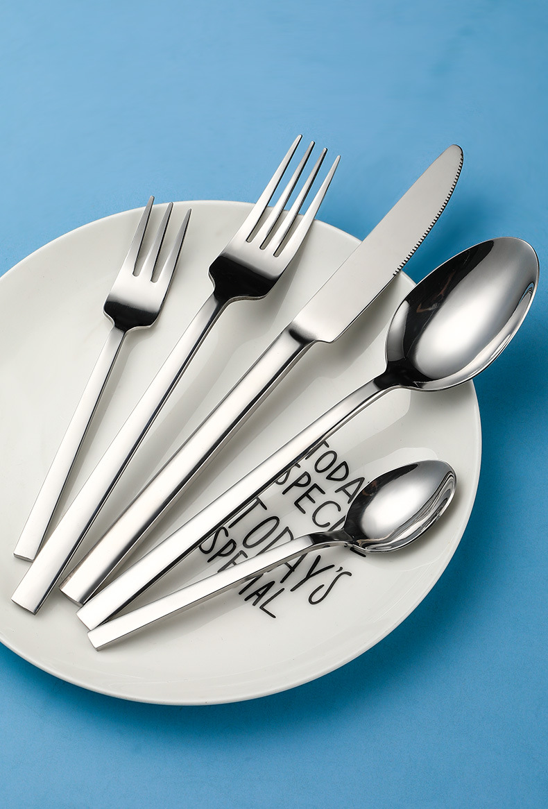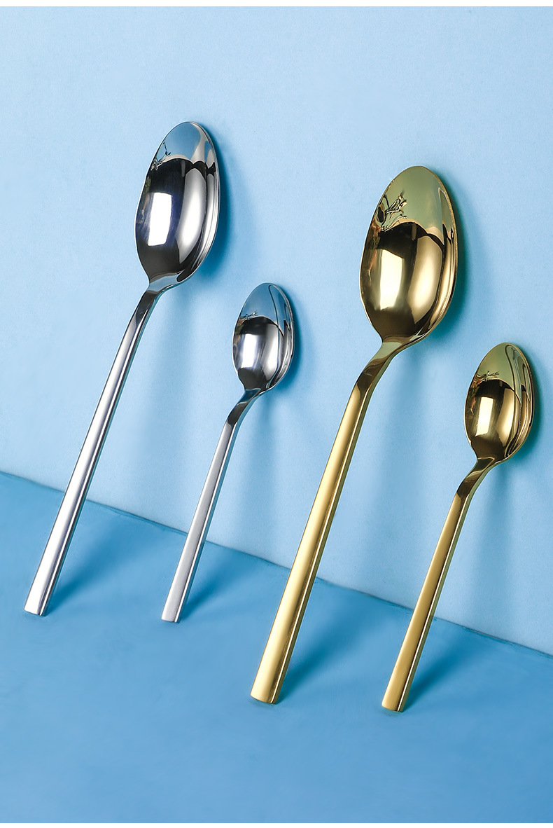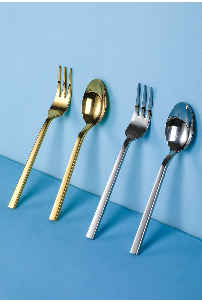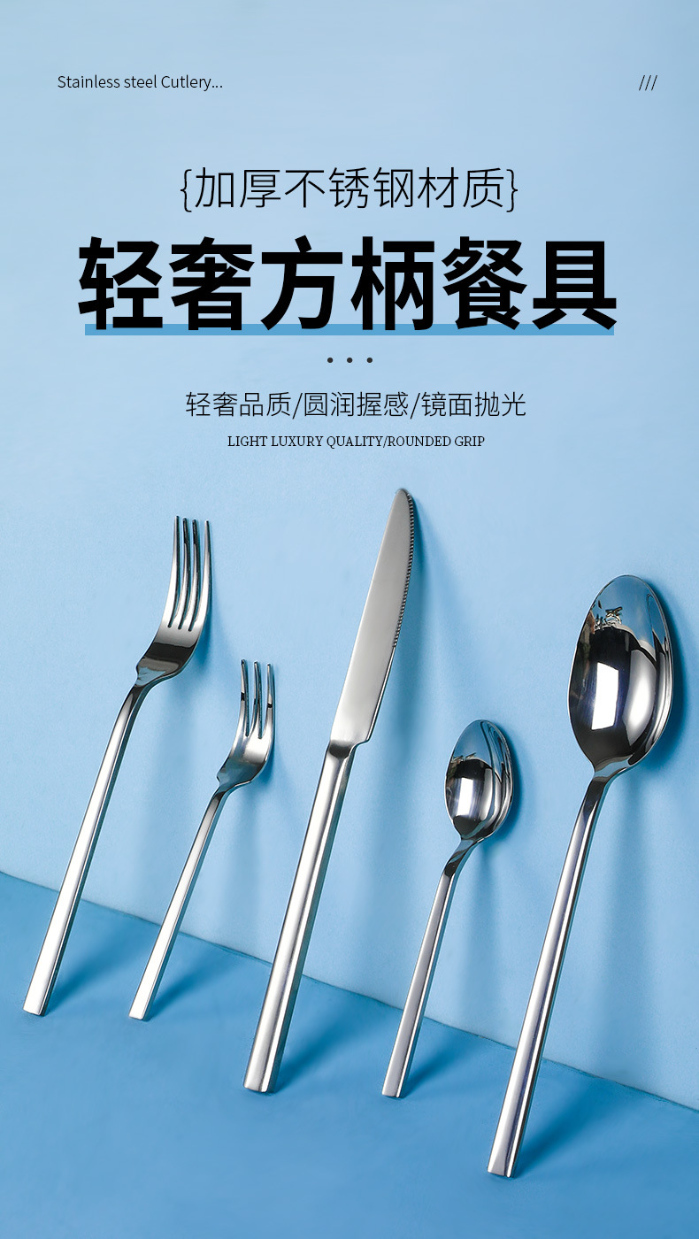 不锈钢创意方柄刀叉勺西餐厅牛排刀叉甜品叉勺家用吃饭圆勺咖啡勺