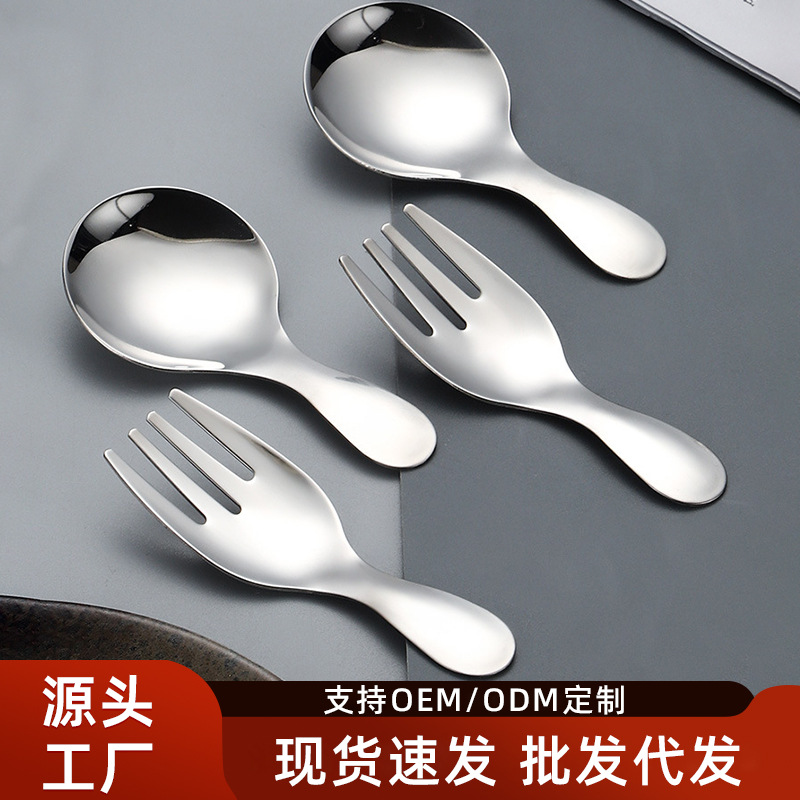 201ステンレス短柄丸頭貝殻スプーンフォーク創意アイスクリームデザートかわいい子供赤ちゃん食事スプーンフォーク