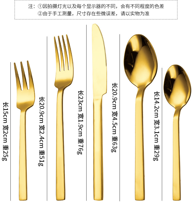 颜色 银色餐刀,银色餐勺,银色餐叉,银色茶勺,银色茶叉,金色餐刀,金色餐勺,金色餐叉,金色茶勺,金色茶叉