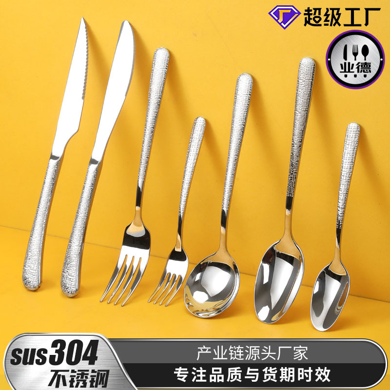 跨境亚马逊 不锈钢304麻绳纹牛排刀叉勺餐具高端西餐具刀叉甜品勺