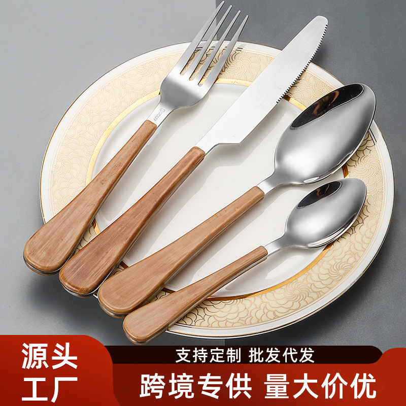 クロスボーダーステンレス鋼のナイフ、フォーク、スプーンカトラリーセット木製ハンドル洋食器ホームホテルステーキナイフとフォークデザートスプーンとフォーク